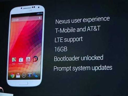 Samsung và Google đã hợp tác để đưa ra phiên bản Galaxy S4 đặc biệt. Phiên bản Google loại bỏ tất cả những tính năng bổ sung phần mềm từ Samsung và thay vào đó là một phiên bản Android gốc trực tiếp từ Google .