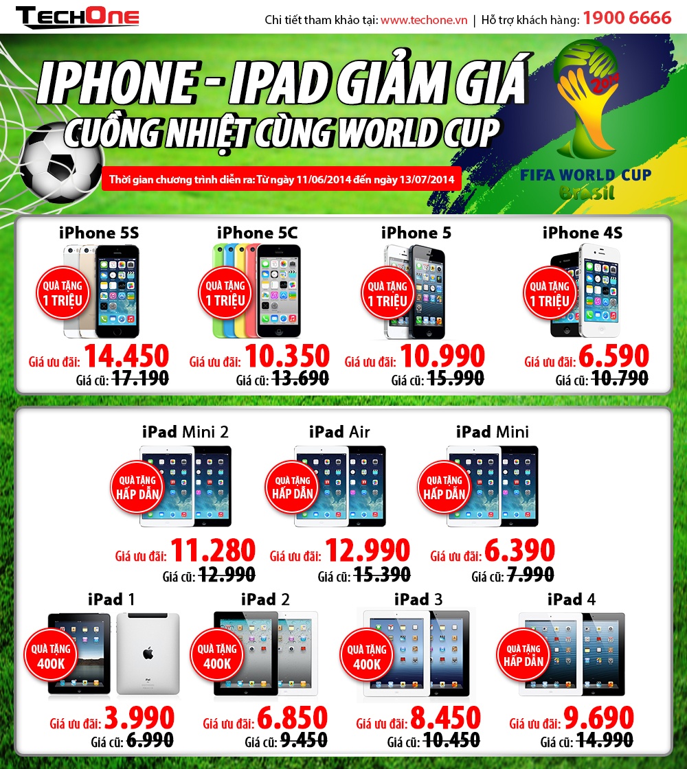 - iPad Mini 2 Retina 16 GB Wi-Fi giá thị trường 9,69 triệu đồng, giá TechOne 8,89 triệu đồng (tiết kiệm 800.000 đồng).