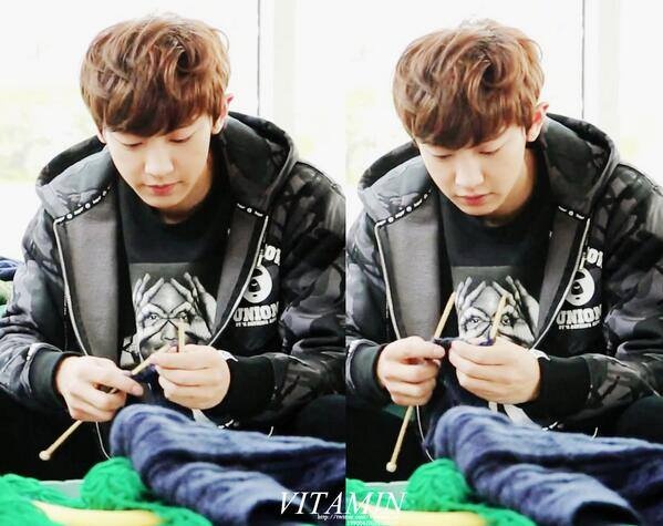 | Chanyeol còn là chàng trai đảm đang khi biết may vá. |