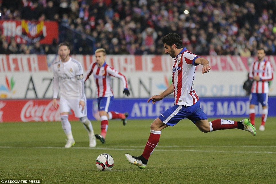 Phút 56, Atletico được hưởng quả penalty khi Ramos kéo ngã Raul Garcia trong vòng cấm. Trên chấm 11 m, chính Raul Garcia đã chuyển hóa cơ hội thành bàn mở tỷ số cho đội nhà.