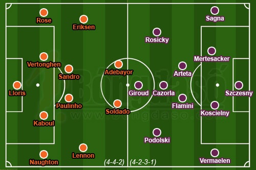 Dẫu sao, Arsenal cũng “may mắn” bởi Tottenham cũng đang chịu chung số phận với họ, thậm chí bi đát hơn. Sơ đồ 4-4-2 của Tim Sherwood gần như chẳng để lại bất kỳ dấu ấn nào đáng kể. Spurs vẫn thất bại với lối chơi vô cùng nhạt nhòa.
