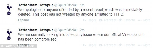 “Chúng tôi rất xin lỗi những ai đã bị xúc phạm bởi dòng tweet gần đây. Nó đã bị xóa ngay lập tức. Nó không dính líu đến bất kỳ thành viên nào của CLB Tottenham Hotspur. Chúng tôi đang kiểm tra để tìm ra kẻ đã xâm nhập vào tài khoản của đội bóng”, trang chủ của Spurs gửi lời xin lỗi tới Liverpool.
