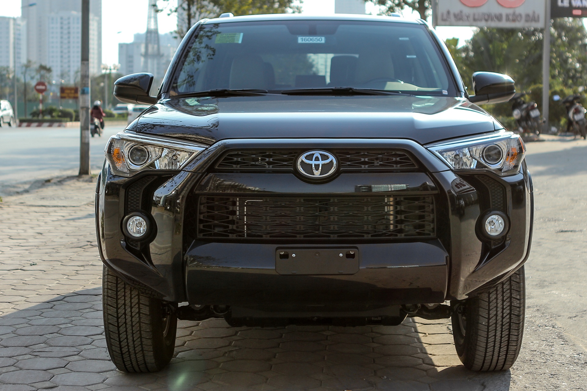 | Thiết kế đầu xe mang những đường nét cơ bắp, với những chi tiết nổi lớn bao quanh và bên trong lưới tản nhiệt. Bên cạnh đó, kiểu dáng cặp đèn pha khiến diện mạo 4Runner có phần dữ dằn hơn. |