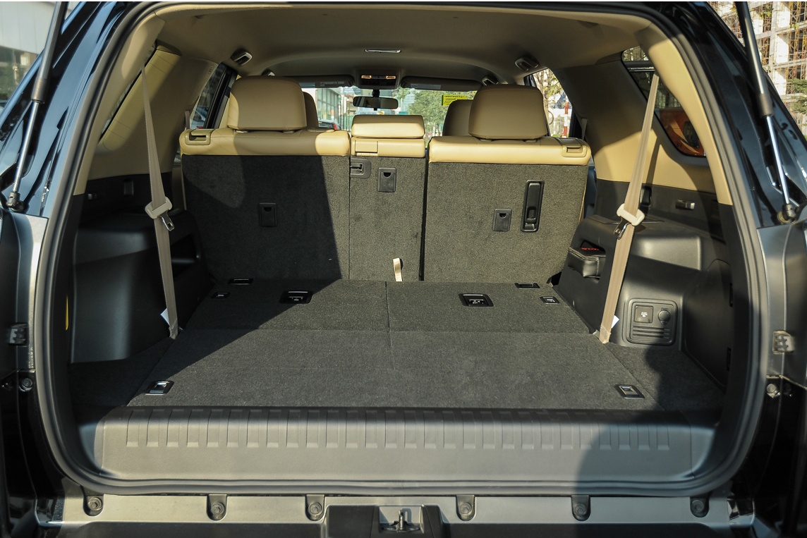 | Hàng ghế thứ 4 của 4Runner có thể gập phẳng, giúp tăng diện tích chứa đồ cho khoang hành lý. Trong khi đó, hàng ghế thứ 2 cũng có thể gập 40/20/40. Dung tích chứa đồ tối đa của 4Runner có thể lên đến 2.514 lít. |