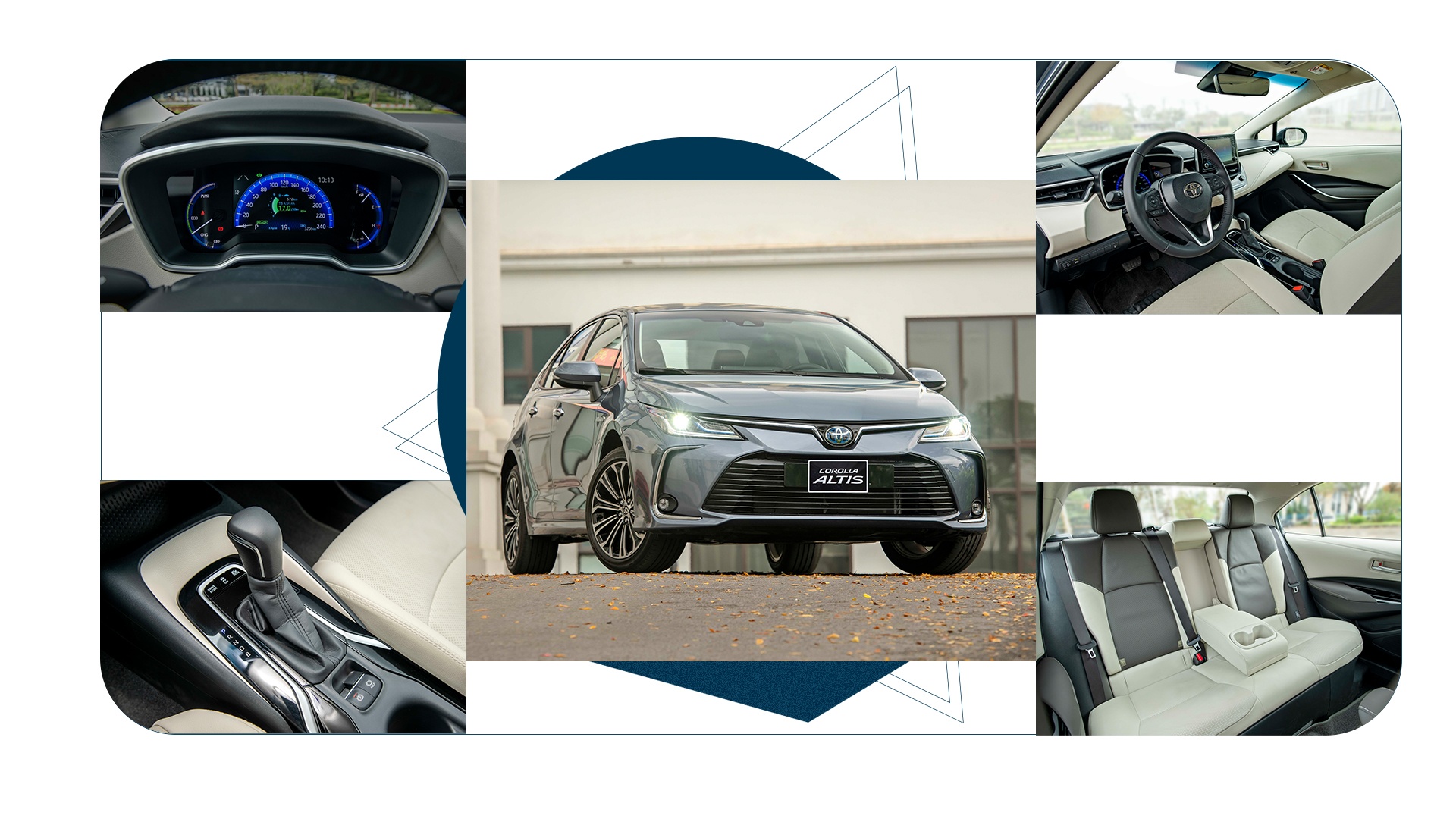 Ở phiên bản cao cấp nhất, Corolla Altis có thể xem như mẫu xe dẫn đầu phân khúc sedan hạng C với loạt trang bị sáng giá. Những tính năng đáng chú ý không thể bỏ qua có thể kể đến như màn hình giải trí trung tâm 9 inch hỗ trợ kết nối Apple CarPlay/ Android Auto không dây, hiển thị kính lái HUD, chìa khóa thông minh…