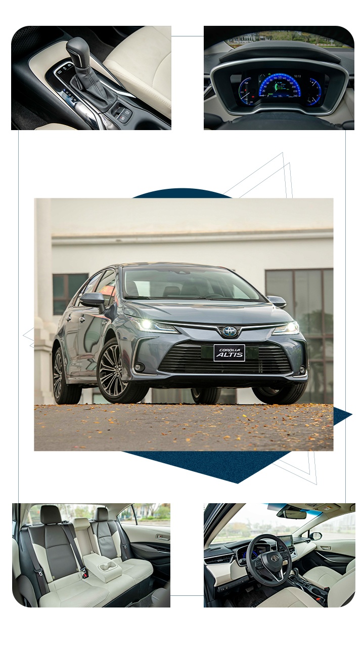 Corolla Altis là mẫu xe thứ 3 của Toyota Việt Nam có tùy chọn động cơ hybrid, sau Corolla Cross và Camry. So với xe dùng động cơ đốt trong truyền thống, Corolla Altis 1.8HEV với động cơ hybrid giúp tiết kiệm nhiên liệu đáng kể, chỉ 4,5 l/100 km cho đường hỗn hợp - tương đương một chiếc xe hạng A. Bên cạnh đó, mẫu xe này còn giúp giảm phát thải và thân thiện với môi trường hơn.