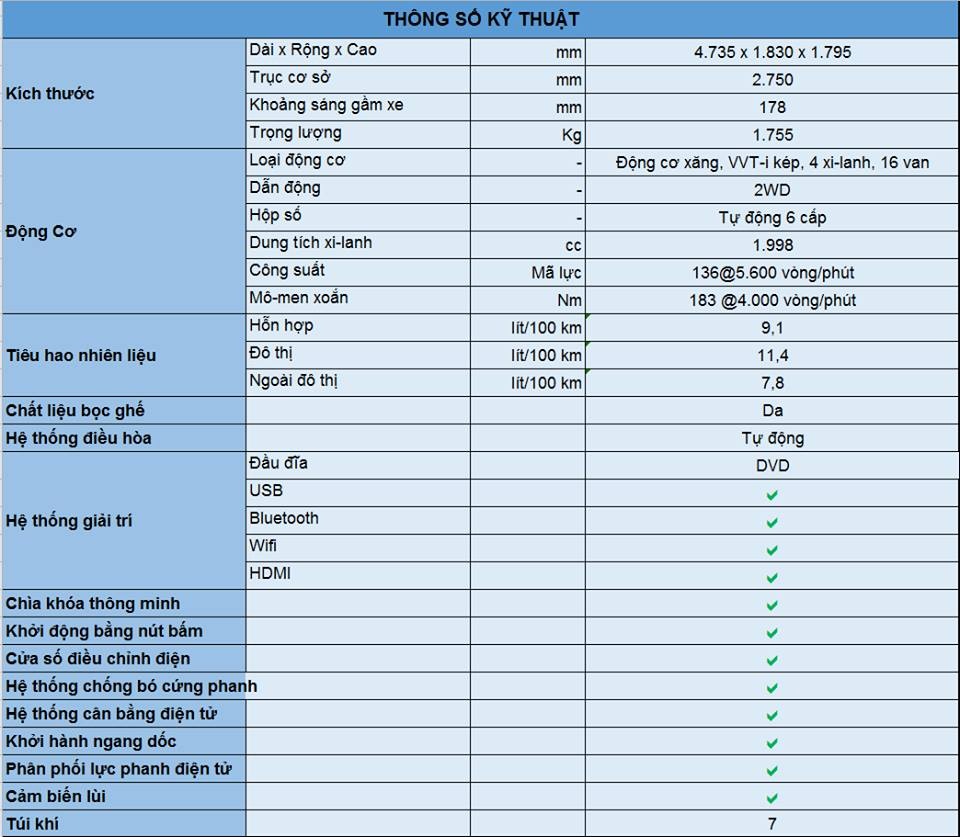 thông số Toyota Innova 2.0V 2016