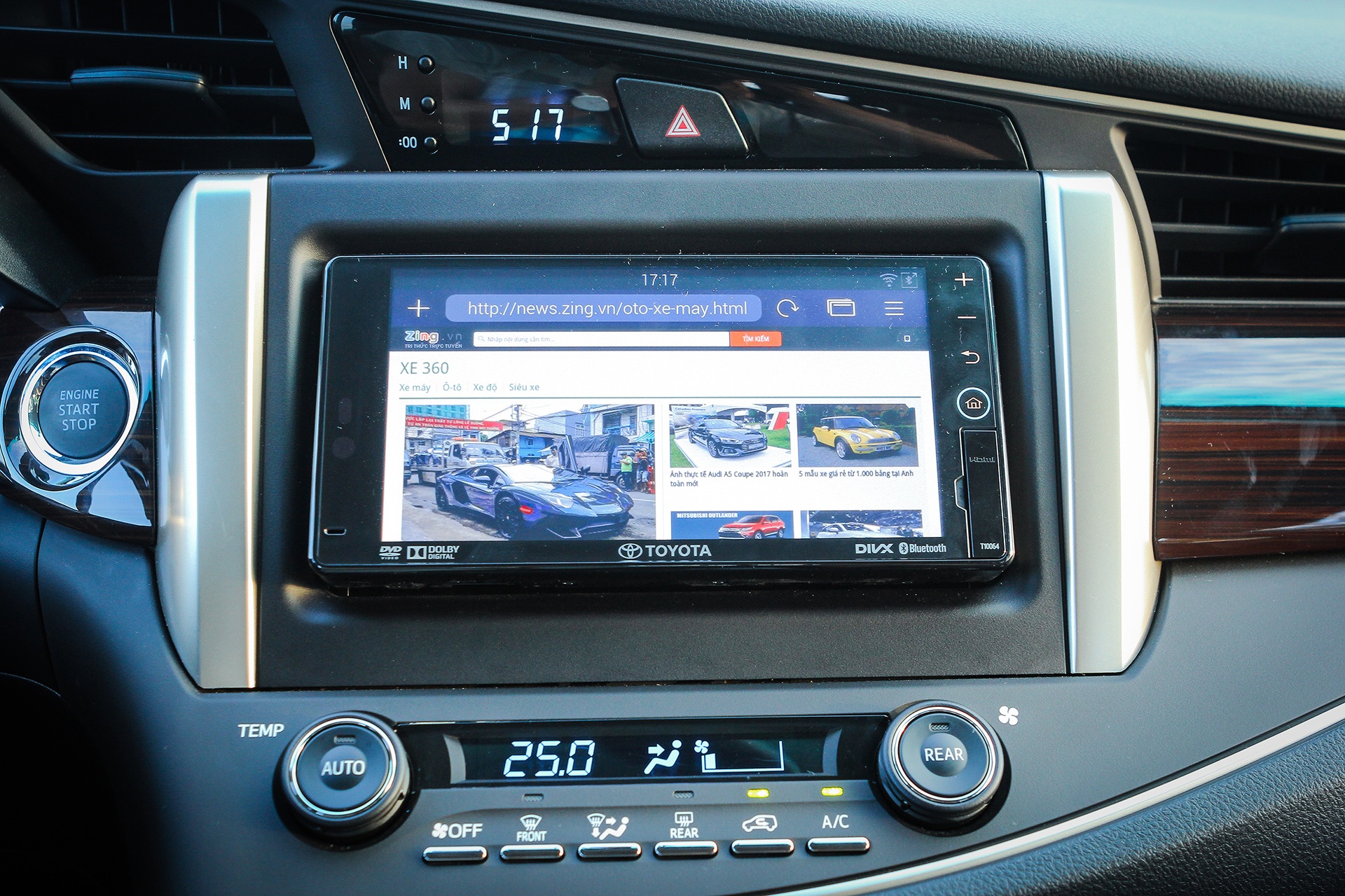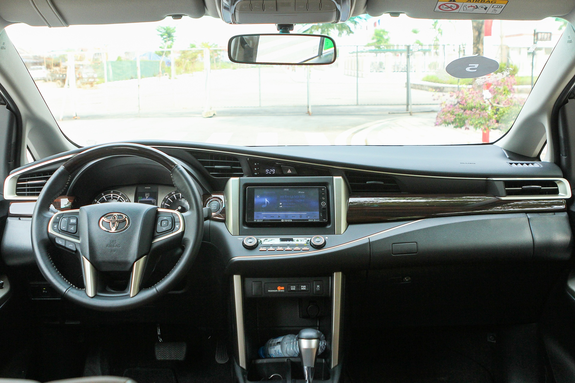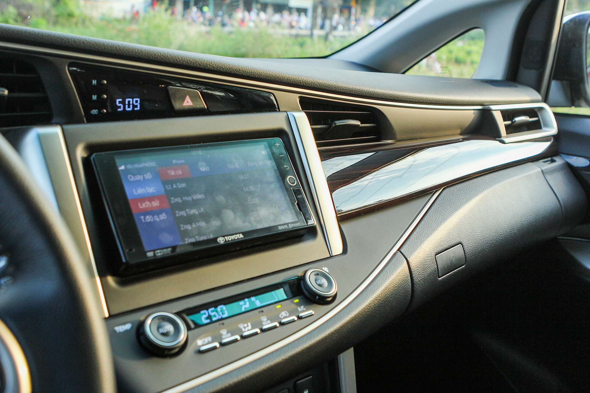 | Bảng táp lô thiết kế liền lạc với chi tiết ốp giả gỗ chạy xuyên suốt. Tấm nhựa trang trí màu bạc đúc liền khối tạo điểm nhấn. Bên cạnh đó, chiếc xe còn được trang bị khởi động bằng nút bấm, màn hình cảm ứng 7 inch, các nút bấm thiết kế tỉ mỉ, trau chuốt, điều tưởng chừng khó xuất hiện trên một chiếc Innova.