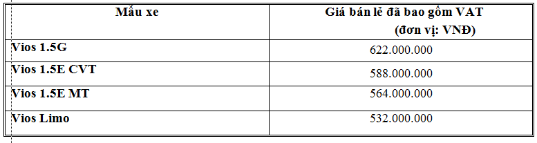 | Giá bán Vios 2016 không thay đổi so với thế hệ cũ. |