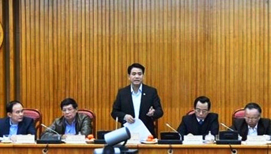 Lãnh đạo TP Hà Nội phát biểu chỉ đạo tại cuộc họp. |