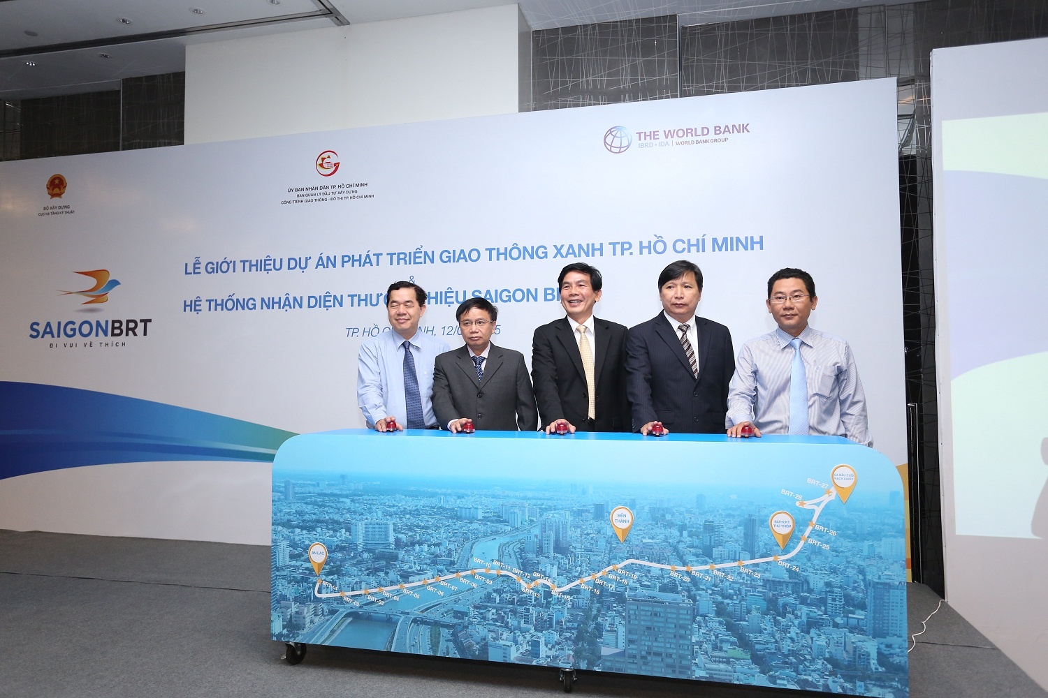| Đại diện các đơn vị chính thức công bố dự án Phát triển Giao thông Xanh TP HCM và Hệ thống nhận diện thương hiệu Sài Gòn BRT. |