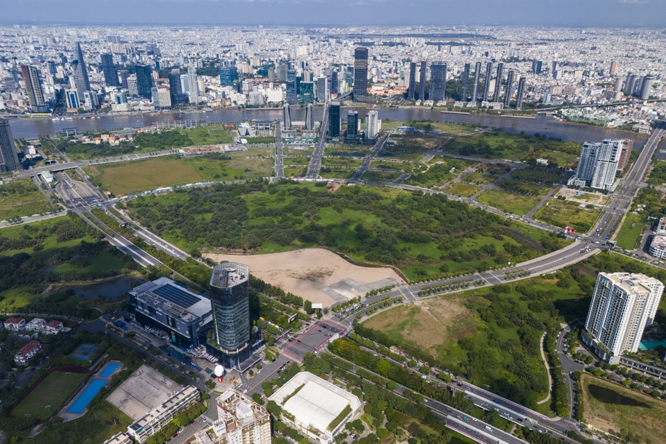 Quảng trường trung tâm thành phố và Trung tâm hành chính TP.HCM của TP.HCM được xây dựng ở lõi Khu đô thị mới Thủ Thiêm (phường An Khánh). Ảnh: Quỳnh Danh. |