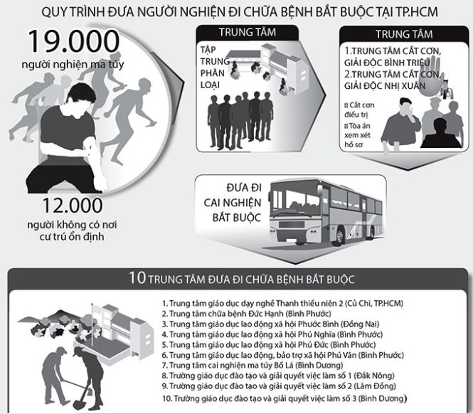 Cùng với việc gấp rút hoàn thiện hai trung tâm tiếp nhận, hệ thống cai nghiện bắt buộc của TP trước đây có khả năng tiếp nhận điều trị cho khoảng 31.000-32.000 người đã được khởi động lại.