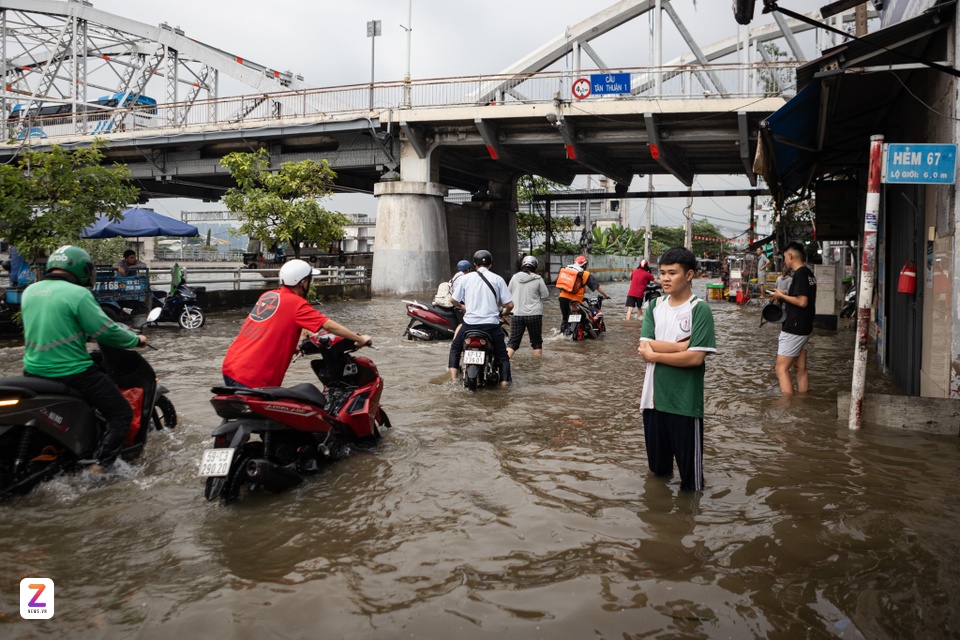 Đường Trần Xuân Soạn (quận 7 cũ) ngập nước bởi triều cường. Ảnh: Khương Nguyễn. |