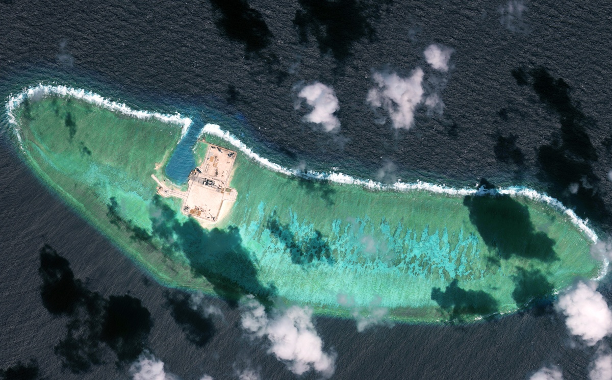 Cận cảnh phía nam đá Châu Viên, nơi các chuyên gia nghi ngờ Trung Quốc xây dựng tháp quan sát, trạm thông tin liên lạc và radar. |