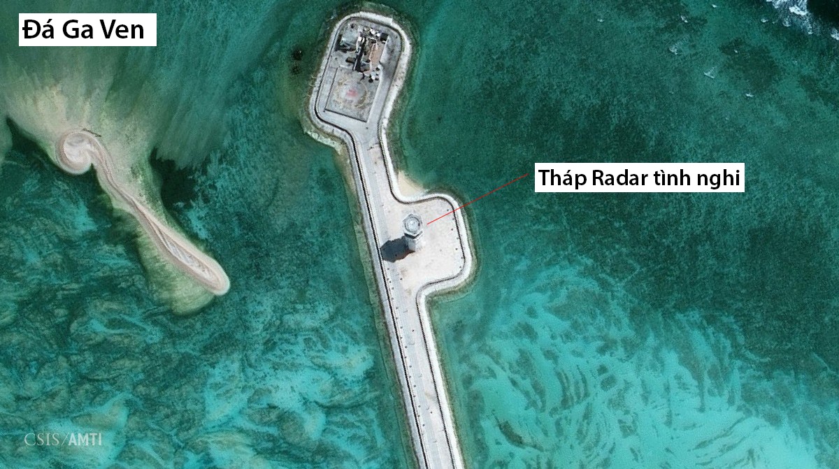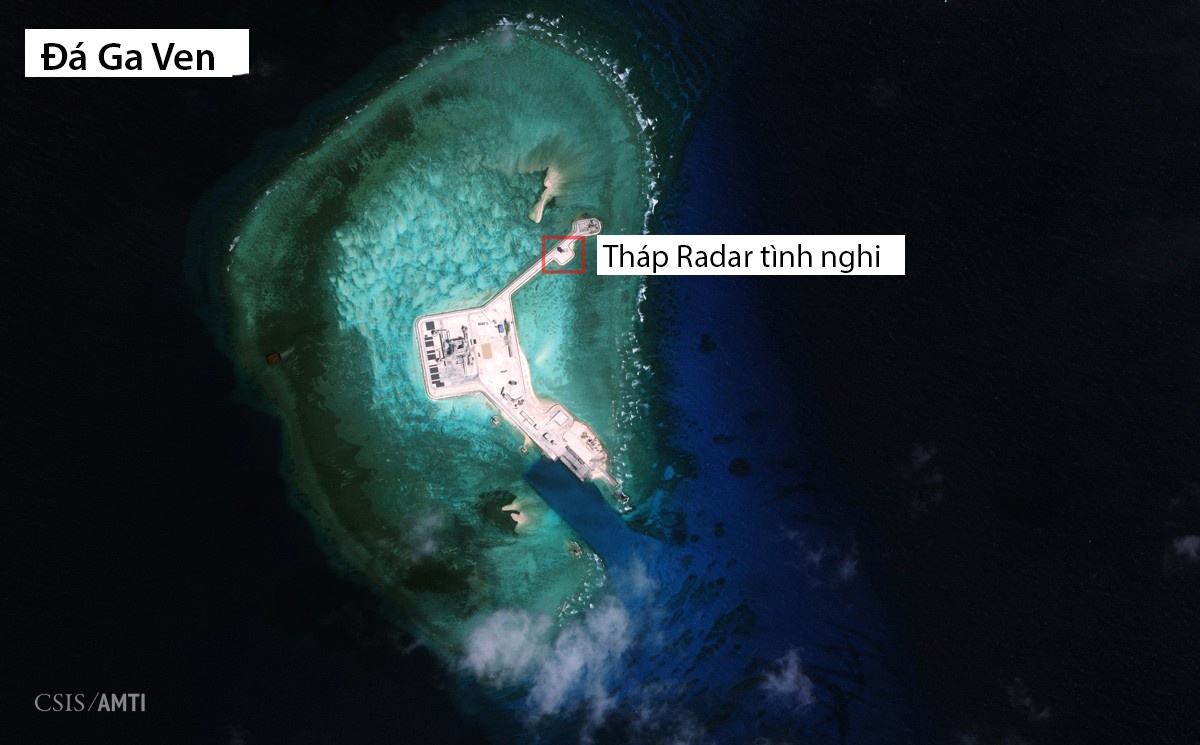 Bên cạnh Châu Viên, Trung Quốc cũng tiến hành các hoạt động xây dựng trên các thực thể chiếm đóng bất hợp pháp khác ở quần đảo Trường Sa của Việt Nam. Trạm radar tình nghi trên đá Ga Ven hôm 12/2/2016. |