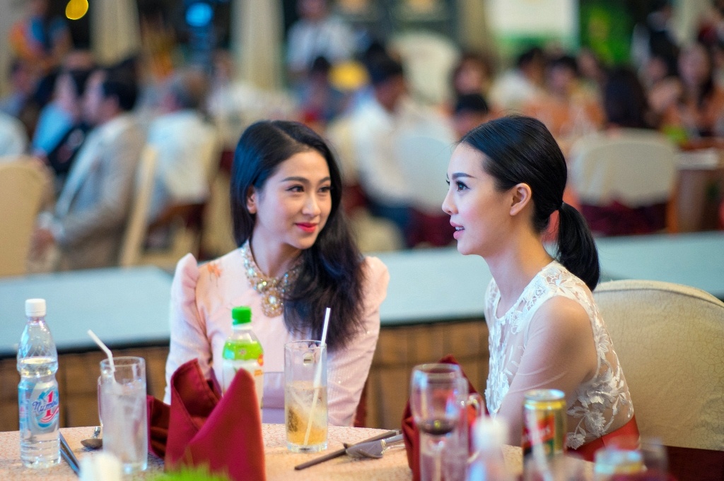 | Trà Giang trò chuyện thân mật với top 10 Miss Ngôi Sao 2014 Thùy Trang. |