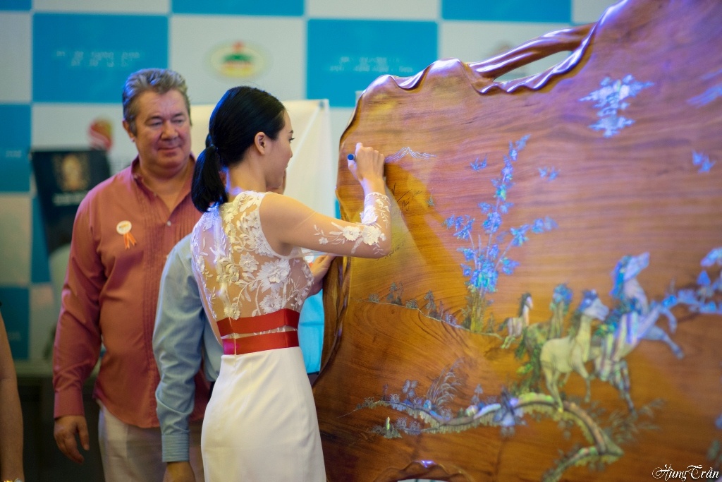 | Điểm nhấn của sự kiện là buổi đấu giá gây quỹ từ thiện, được các doanh nhân tích cực hưởng ứng, thu về gần 1 tỷ đồng dành cho quỹ học bổng Vừ A Dính và quỹ Vì Trường Sa và Hoàng Sa thân yêu. |