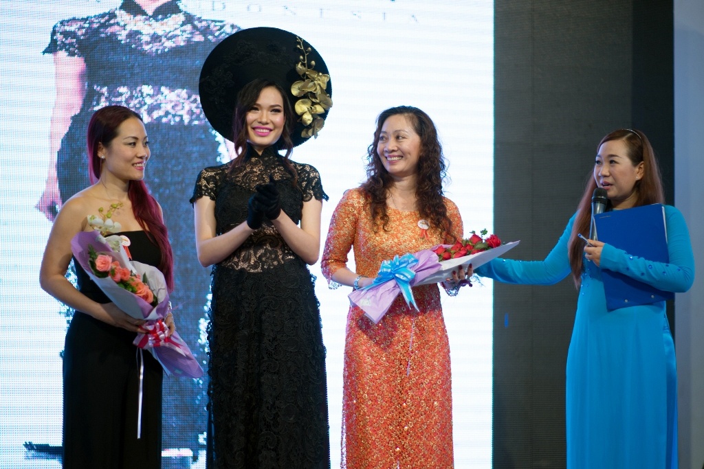 | NTK Đoàn Quỳnh Nhi ủng hộ buổi đấu giá với chiếc áo dài nằm trong khuôn khổ Asia Fashion Week 2014. |