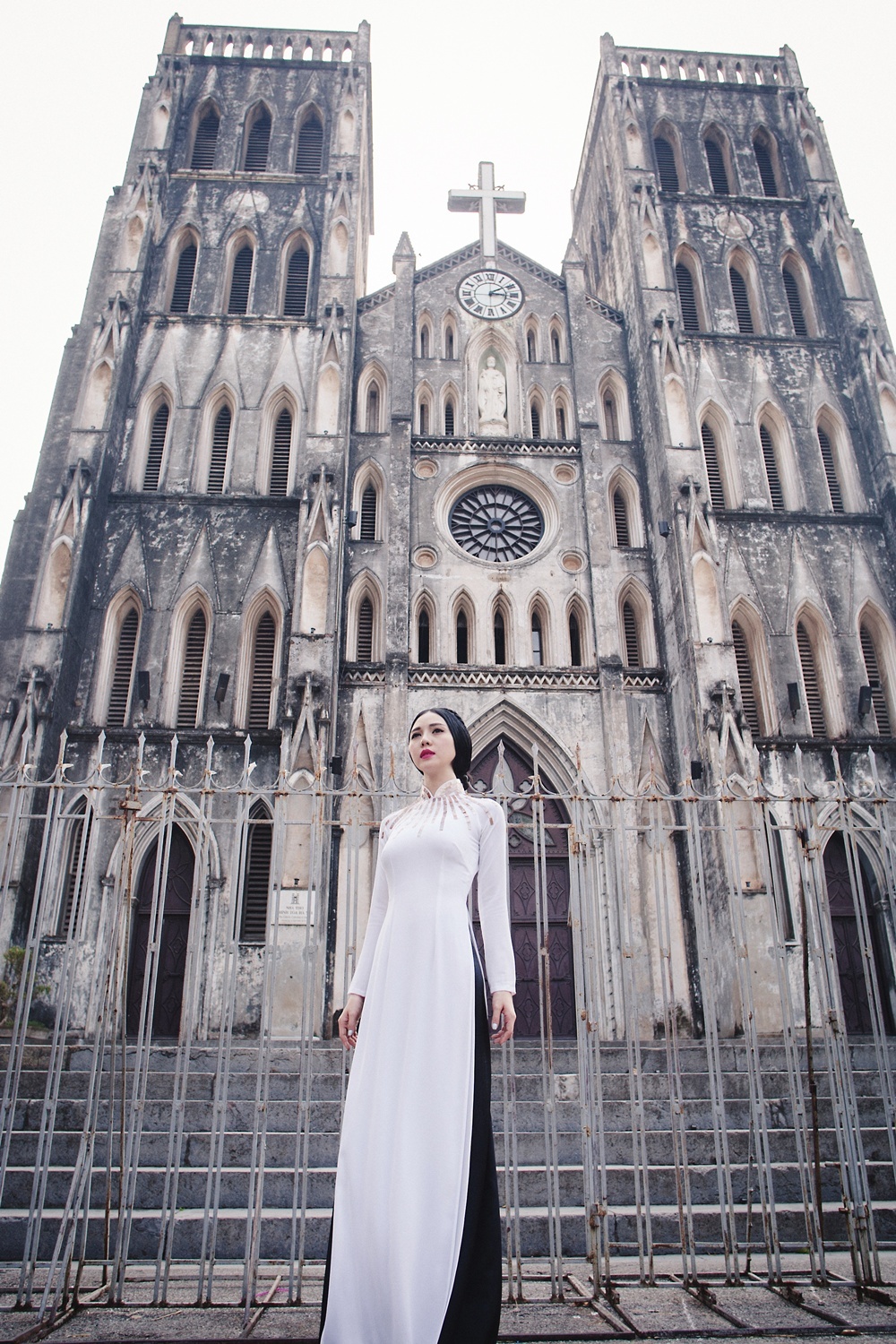 | Bộ ảnh được thực hiện tại các địa danh nổi tiếng của Hà Nội như Nhà thờ Lớn, phố cổ, khu vực Hồ Gươm, chùa Tháp Bút... |