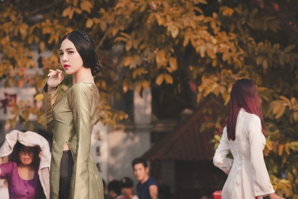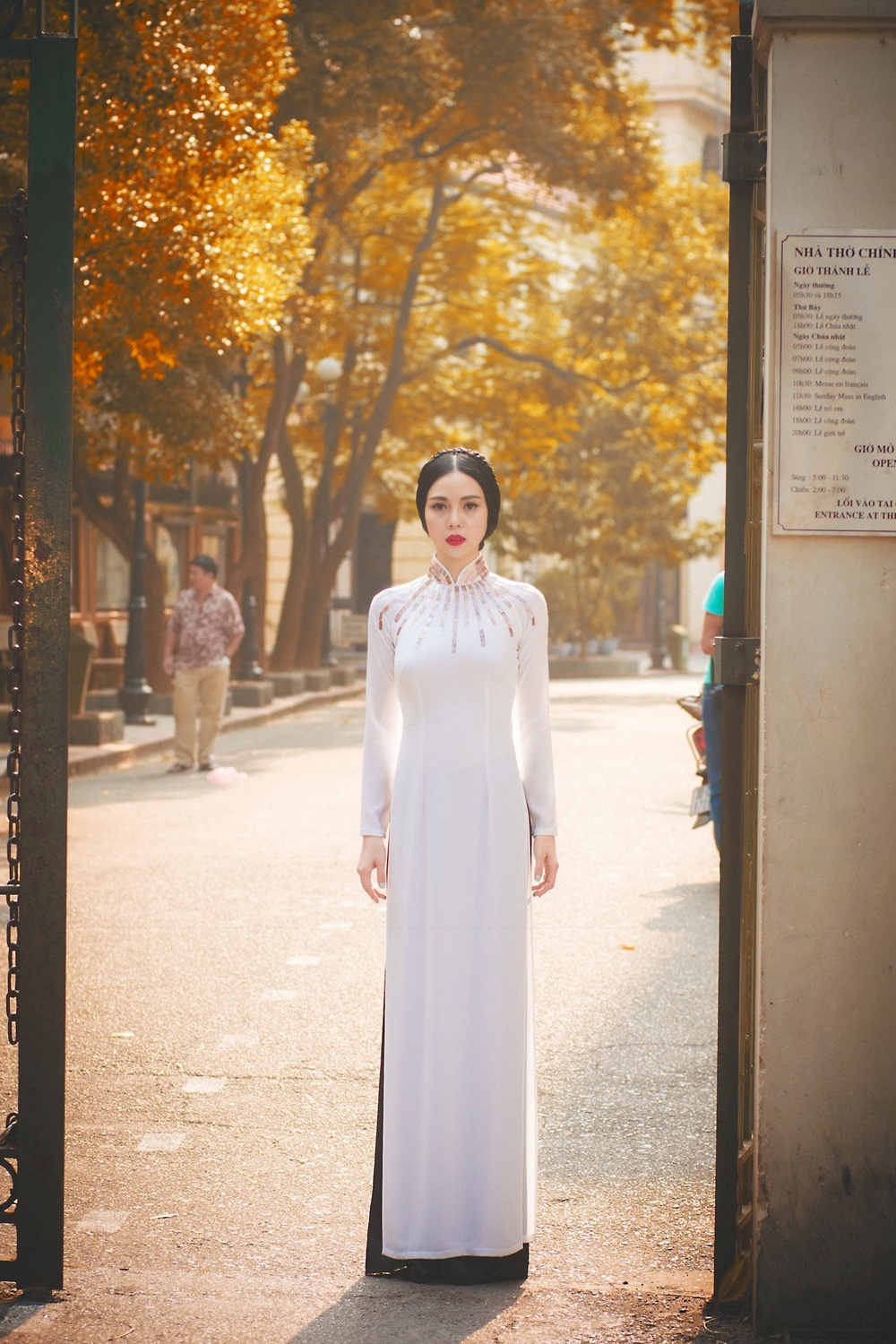 | Sau khi tham gia lễ hội áo dài Hương sắc Hà Nội nhân kỷ niệm 60 năm Giải phóng Thủ đô, á hậu Trà Giang đã quyết định thực hiện một bộ ảnh để ghi lại những khoảnh khắc đẹp trong tiết trời thu Hà Nội. |