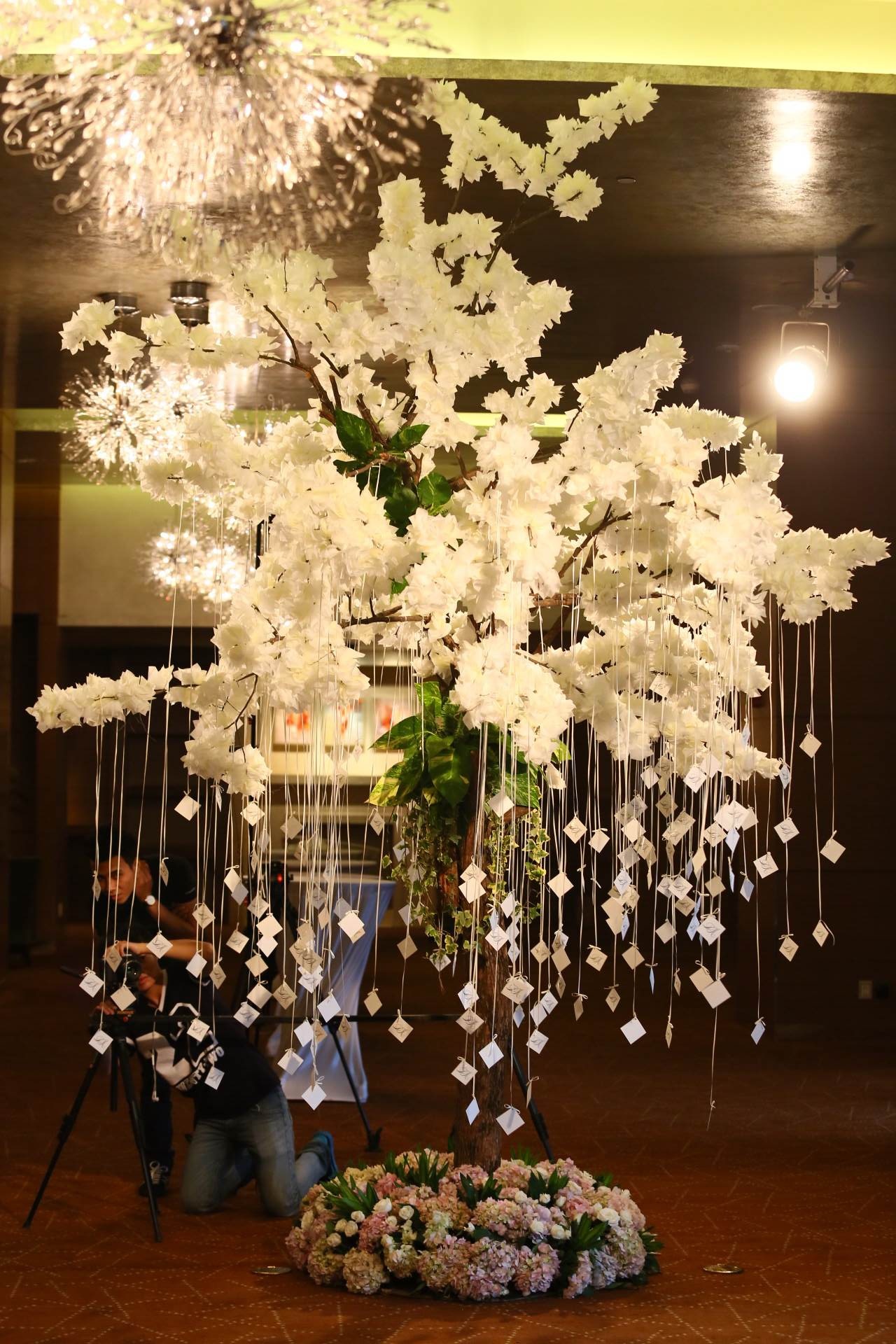 | Tiệc cưới của Trà My Idol sử dụng hai gam màu chủ đạo là trắng và tím, vừa tạo sự trang nhã lại rất lãng mạn. |