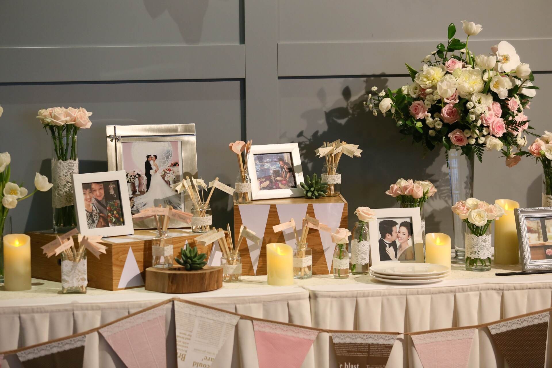 | Góc lưu niệm trong đám cưới nổi bật với những gam màu dễ thương. |