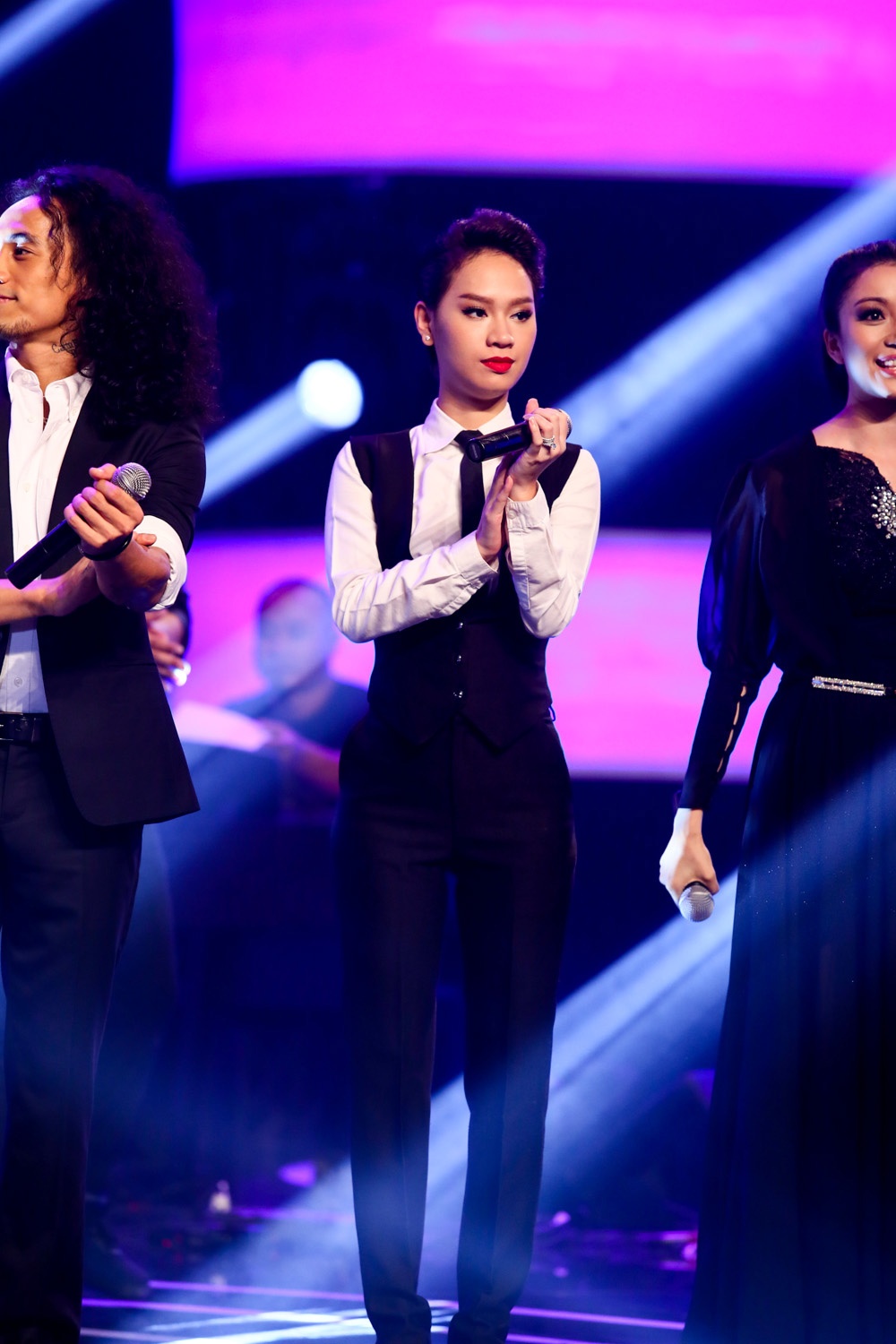 | Trong đêm chung kết, Trà My cùng các thí sinh bị loại trước đó tham gia biểu diễn một tiết mục. Đây cũng là lần đầu tiên cô trở lại sân khấu sau đám cưới hoành tráng với đại gia Sài thành. |