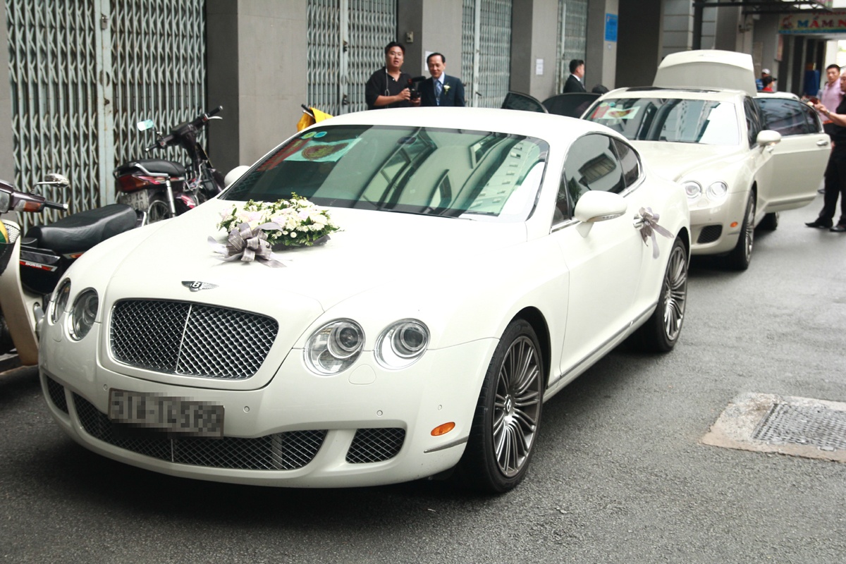 | Chiếc Bentley màu trắng được sử dụng trong lễ rước dâu mà "bạn đồng hành" cùng đại gia Tô Văn Đức hàng ngày. Đây cũng là chiếc xe dẫn đầu đoàn rước dâu. |