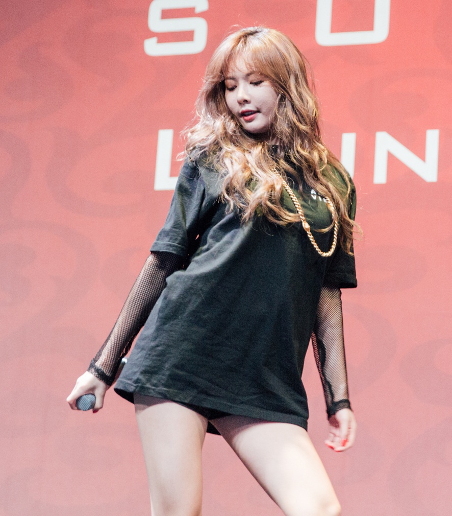 | Thành viên HyunA - cô gái vẫn được coi là người kế thừa biệt danh "nữ hoàng sexy" của Lee Hyo Ri - trên sân khấu. |