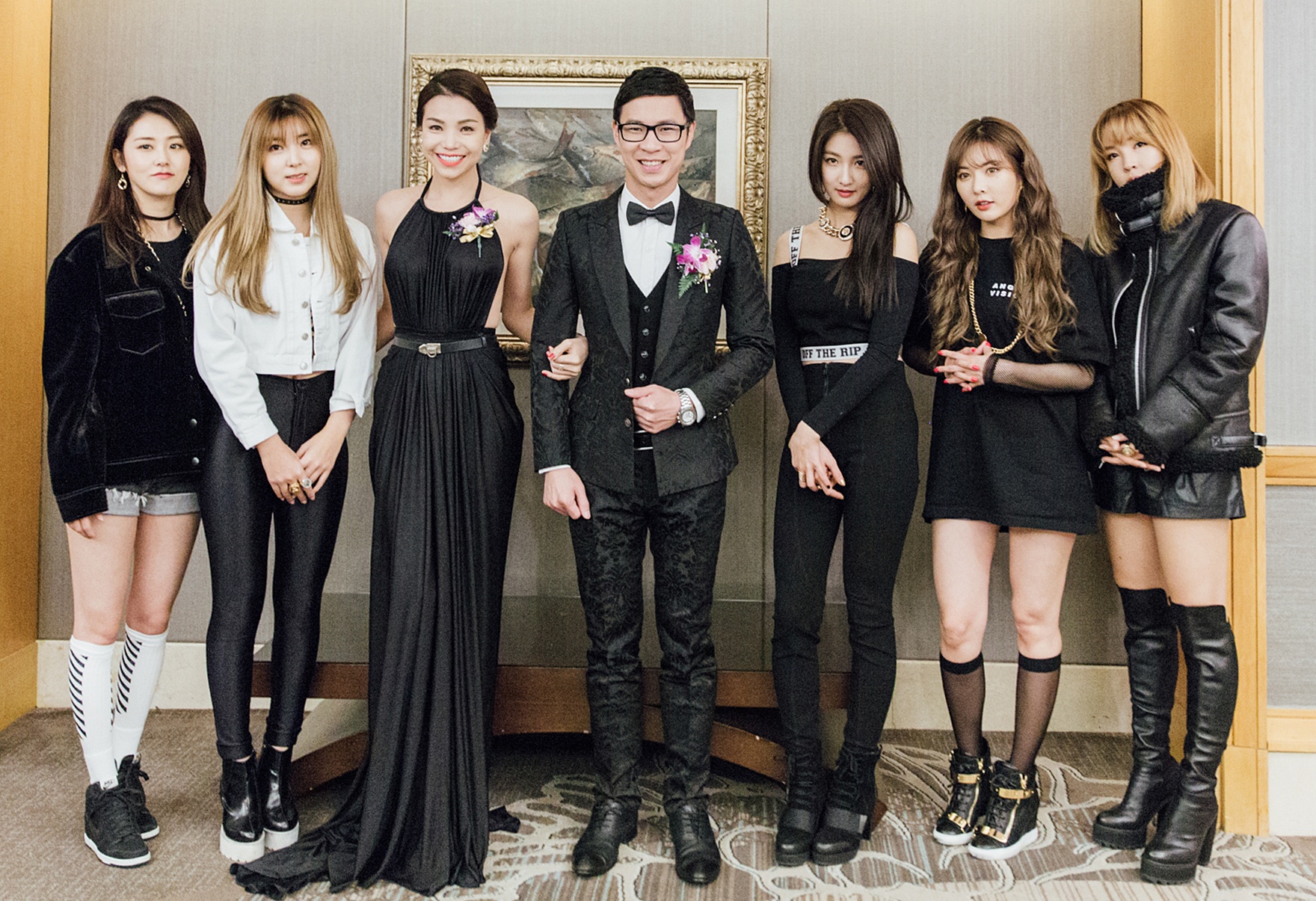 | 2 nghệ sĩ Việt Nam chụp ảnh cùng 4minute. Trà Ngọc Hằng có phần lấn át các ngôi sao thần tượng xứ Hàn bởi chiều cao và vẻ quyến rũ. |