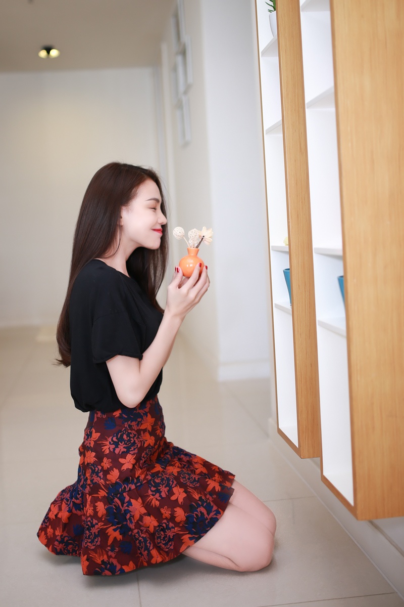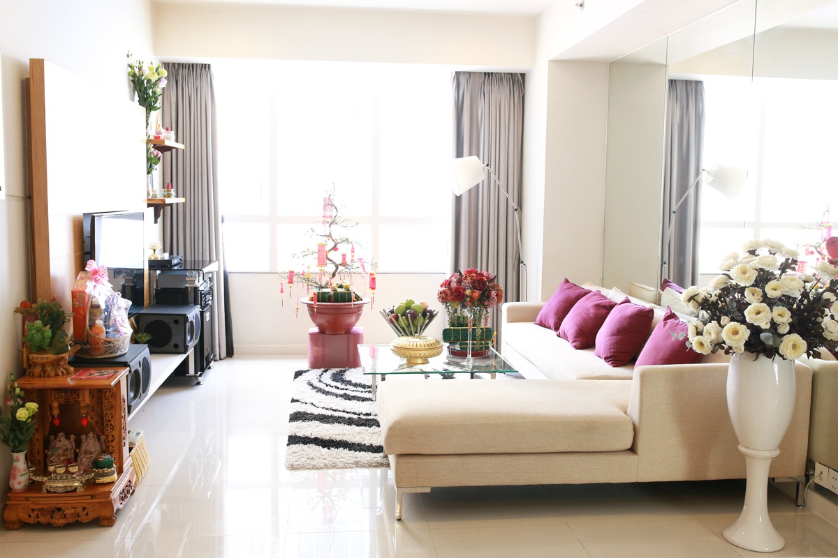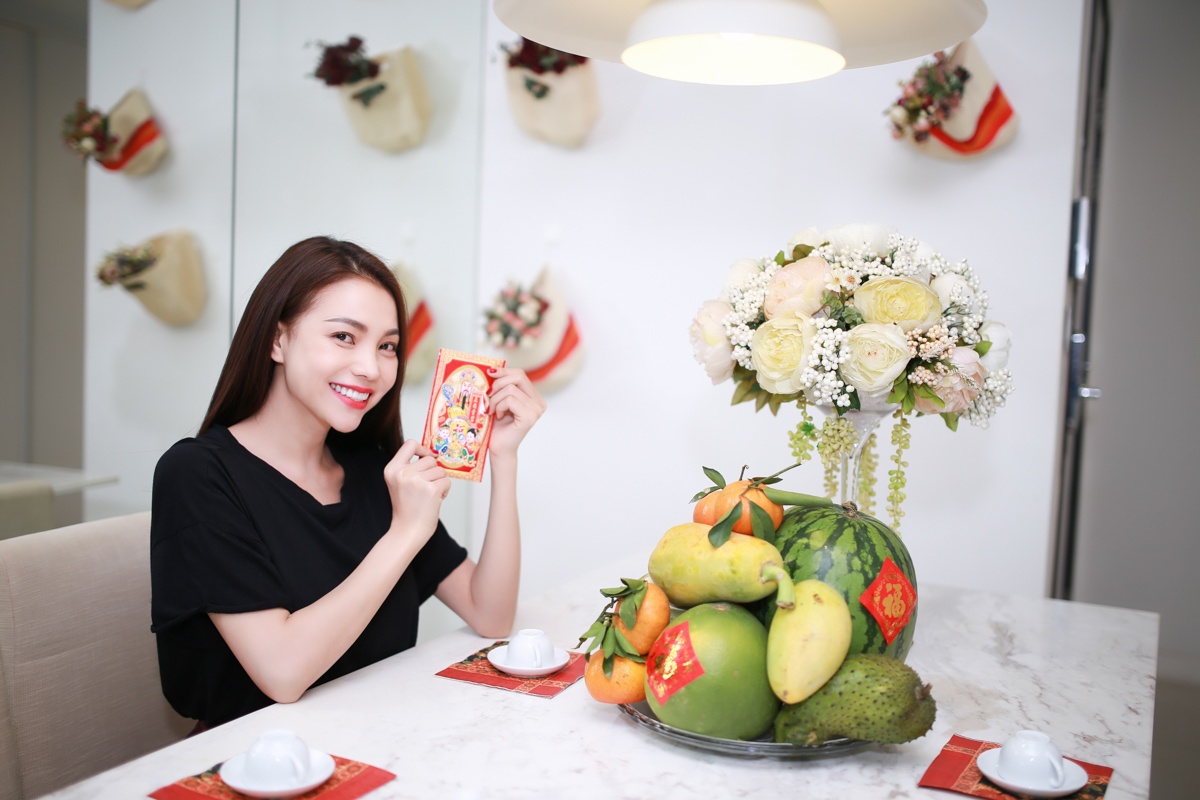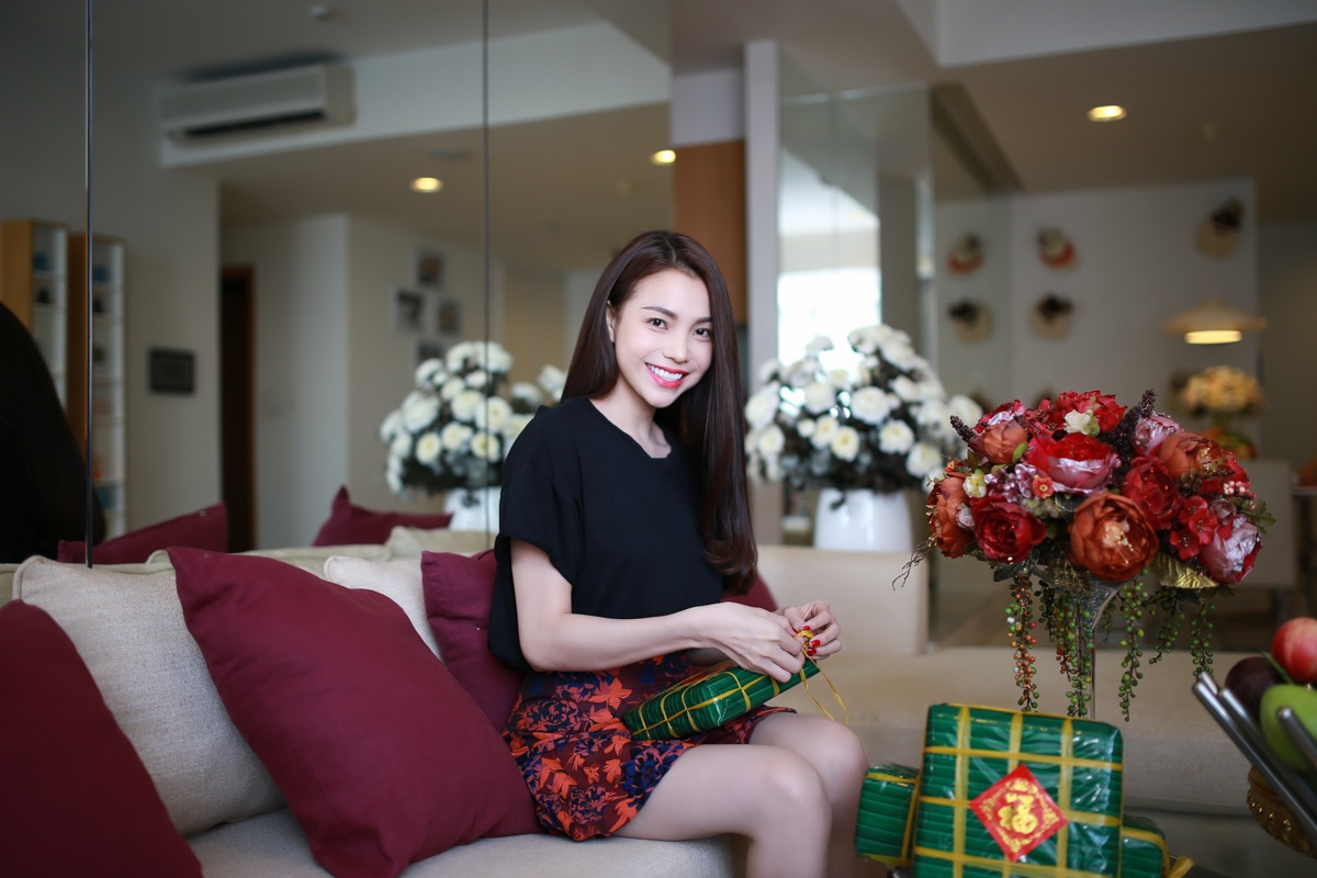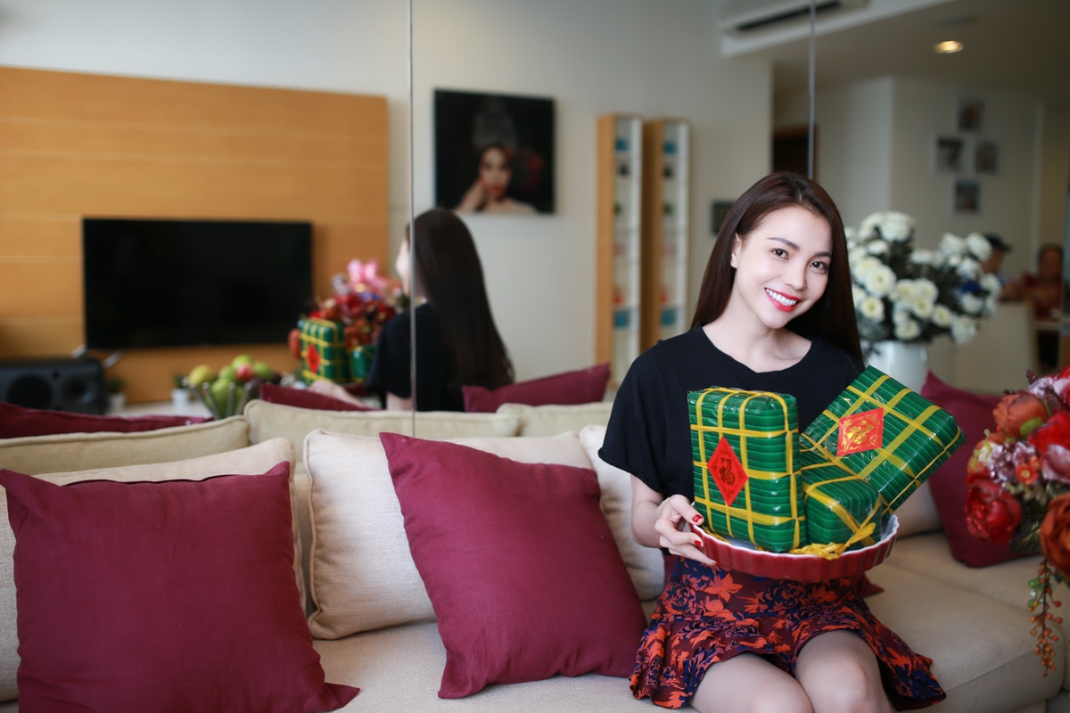 Hòa chung không khí mùa xuân đang đến gần, người mẫu - ca sĩ đã dành thời gian để bày trí lại căn hộ chung cư tại TP HCM mà cô đang sống.