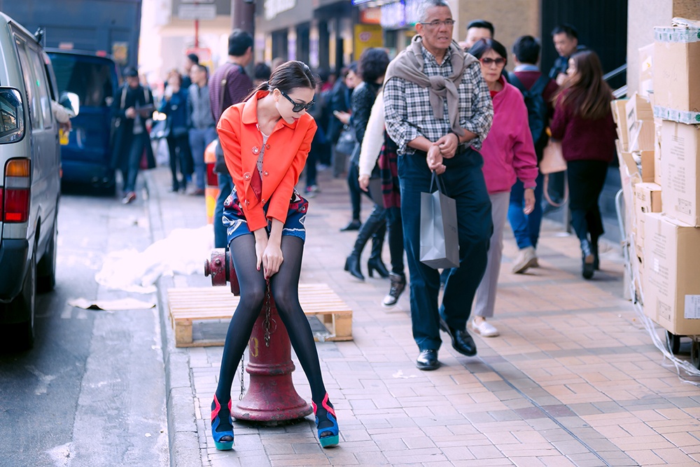 Người đẹp 9X nổi bật tại xứ cảng thơm với trang phục mang màu sắc rực rỡ.