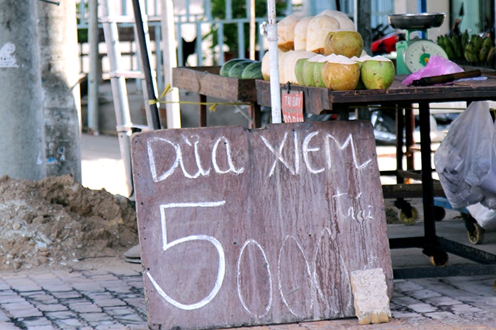 | Dừa xiêm mới đầu mùa nắng giá tại vườn 12.000 đồng/trái, nay giá lẻ tại TP.HCM chỉ còn 5.000 đồng/trái. |