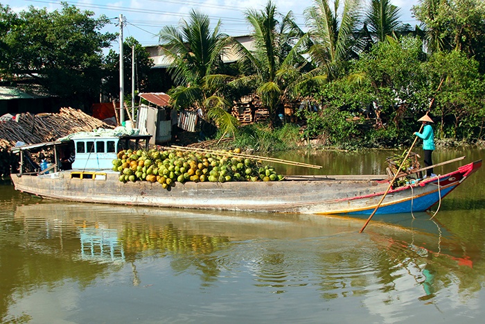 | Ghe thuyền chở dừa từ Bến Tre liên tục đổ dồn về thành phố. |