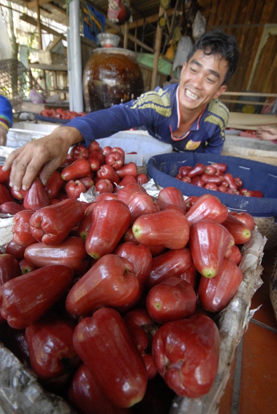 | Ổi ruột hồng, giống mới phát triển ở ĐBSCL. Năm nay, mặt hàng này cũng góp mặt ở chợ Tết. |