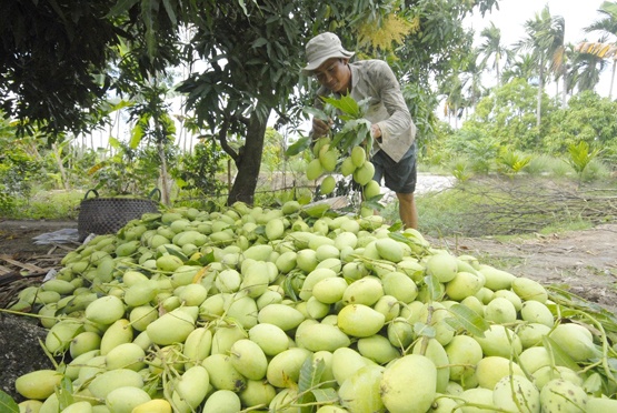 | Xoài cát Hòa Lộc ở Đồng Tháp những ngày này thương lái đến tận vườn thu mua, với giá 28.000-30.000 đồng/kg. |