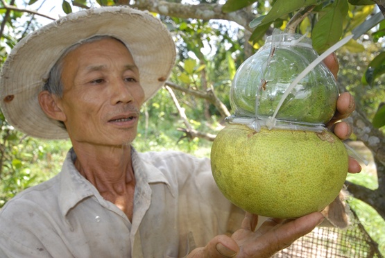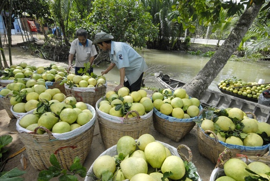 | Vùng bưởi Năm roi ở Phú Hữu - Hậu Giang, nhiều nhà vườnđã cho thu hoạch bán cho thương lái. |