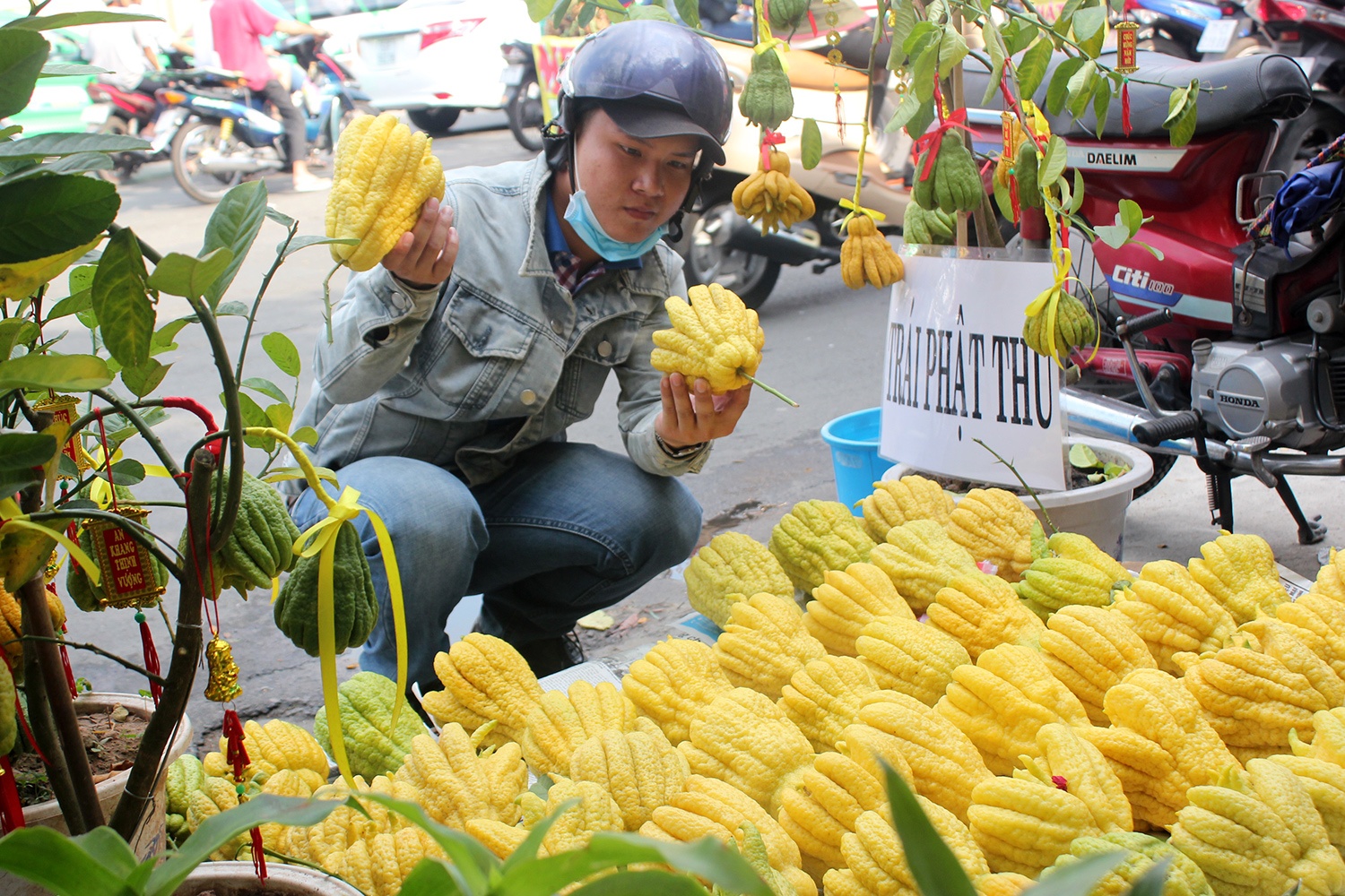 | Phật thủ là loại quả được bày bán nhiều nhất, với mức giá chỉ 100.000-300.000 đồng một quả. |