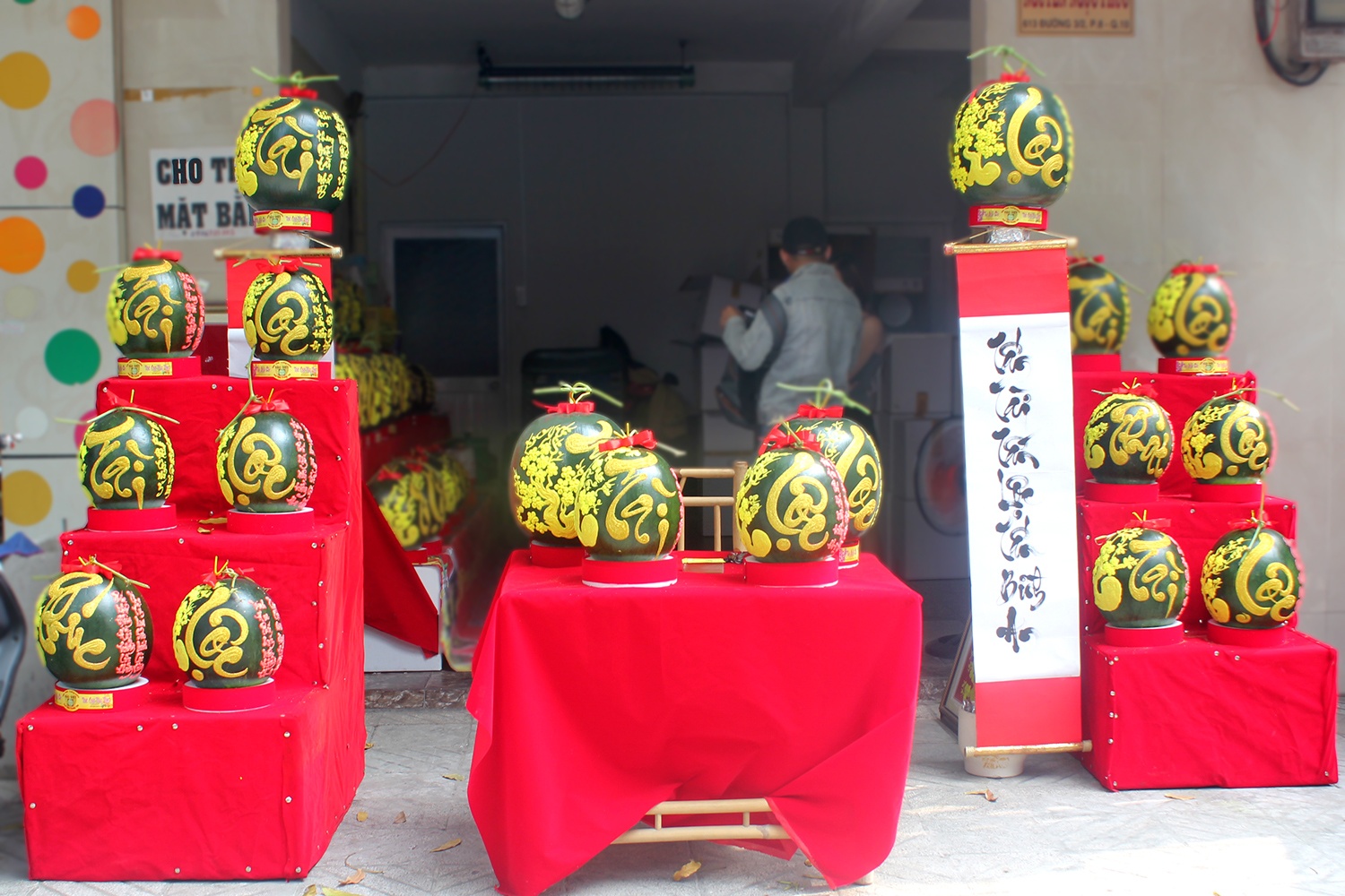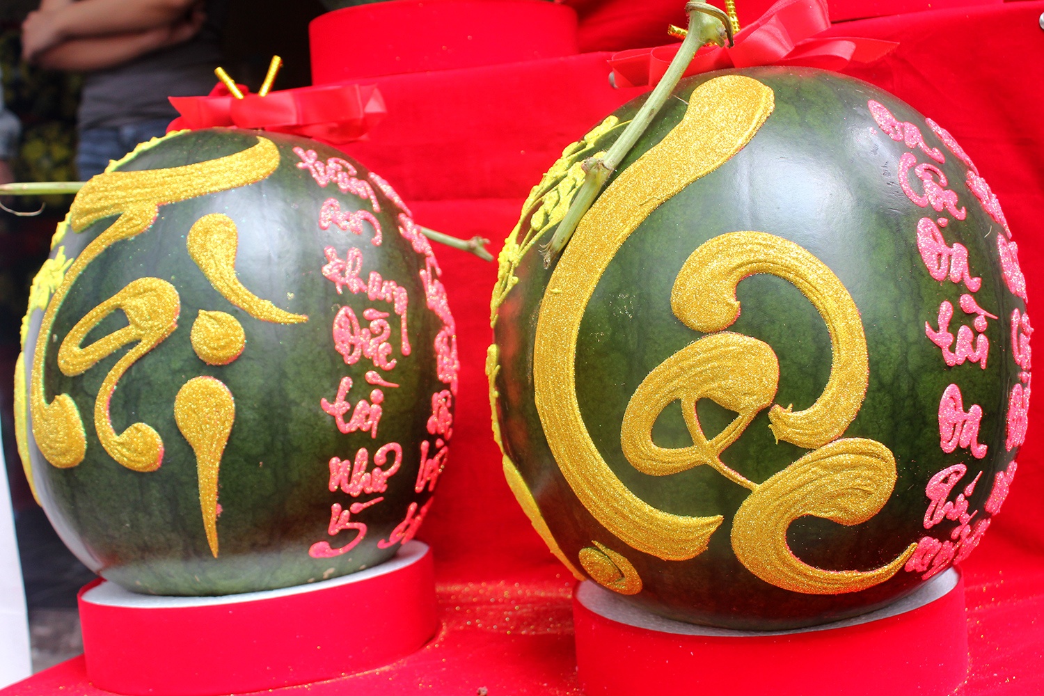 | Dưa hấu chữ nổi thư pháp có giá bán 50.000 đồng/kg, tương đương với mức giá 300.000 - 450.000 đồng