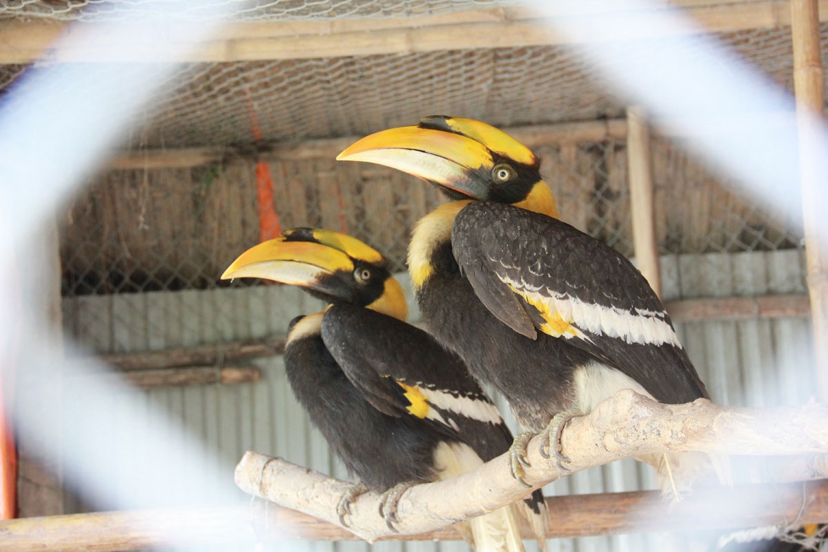 Cặp chim hồng hoàng tại chuồng nuôi.