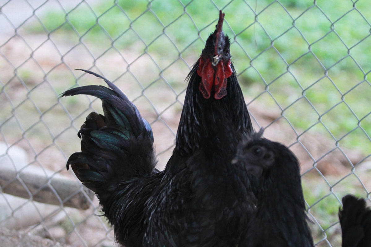 | Ngoài các loại chim trĩ đỏ, chim công, vịt uyên ương được nhân giống rộng rãi thì những con gà mặt quỷ, gà
