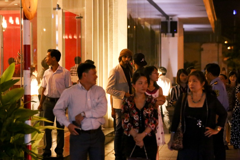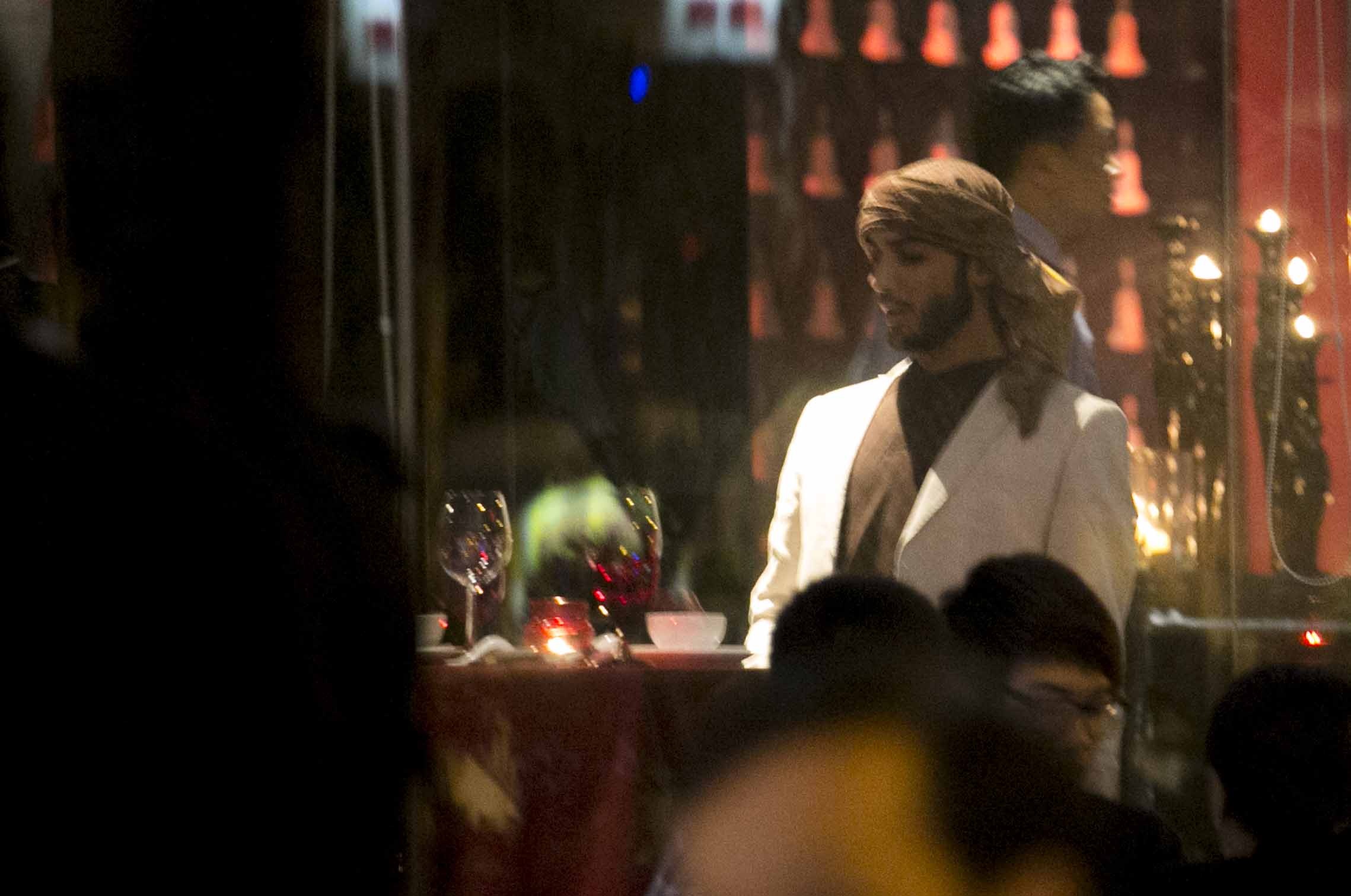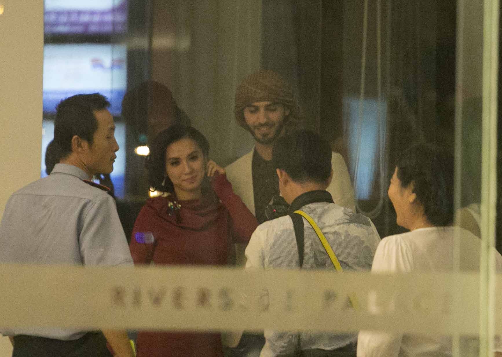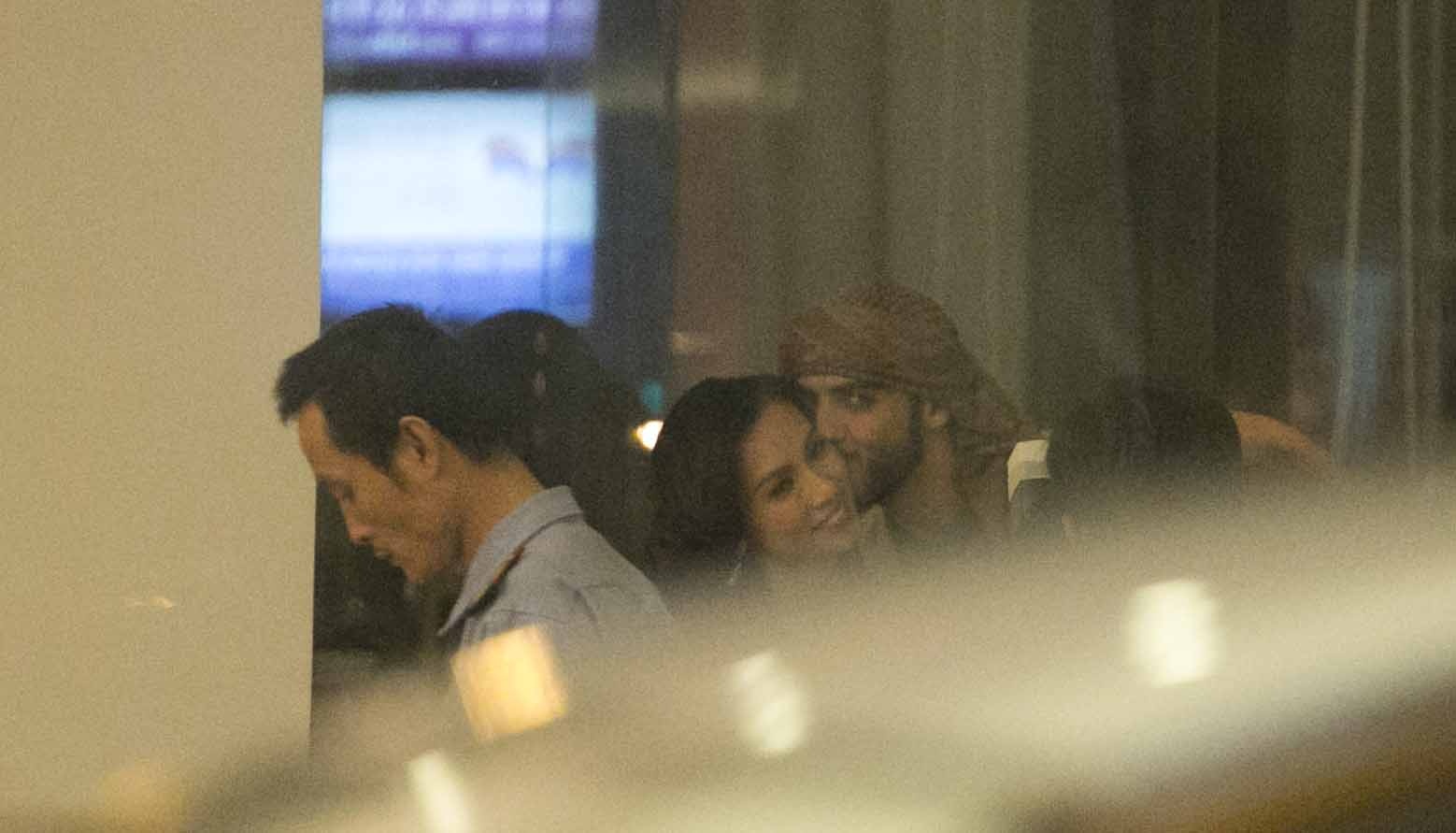 | Omar hôn lên má Huyền Ny trước khi bước vào nhà hàng. |