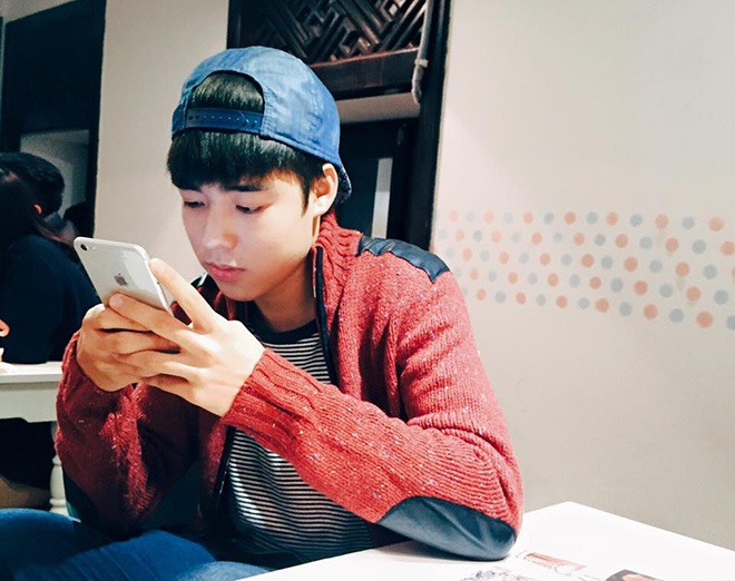 | Những ngày qua, bức hình nam sinh bị chụp lén trên xe buýt gây chú ý trên mạng. Trong ảnh, chàng trai mặc áo phông giản dị, đeo tai nghe và mặt cúi xuống chăm chú nhìn vào điện thoại. |