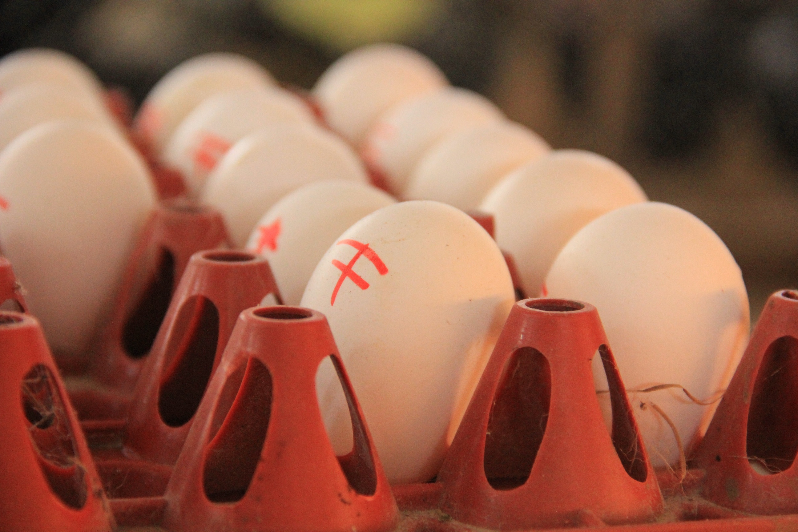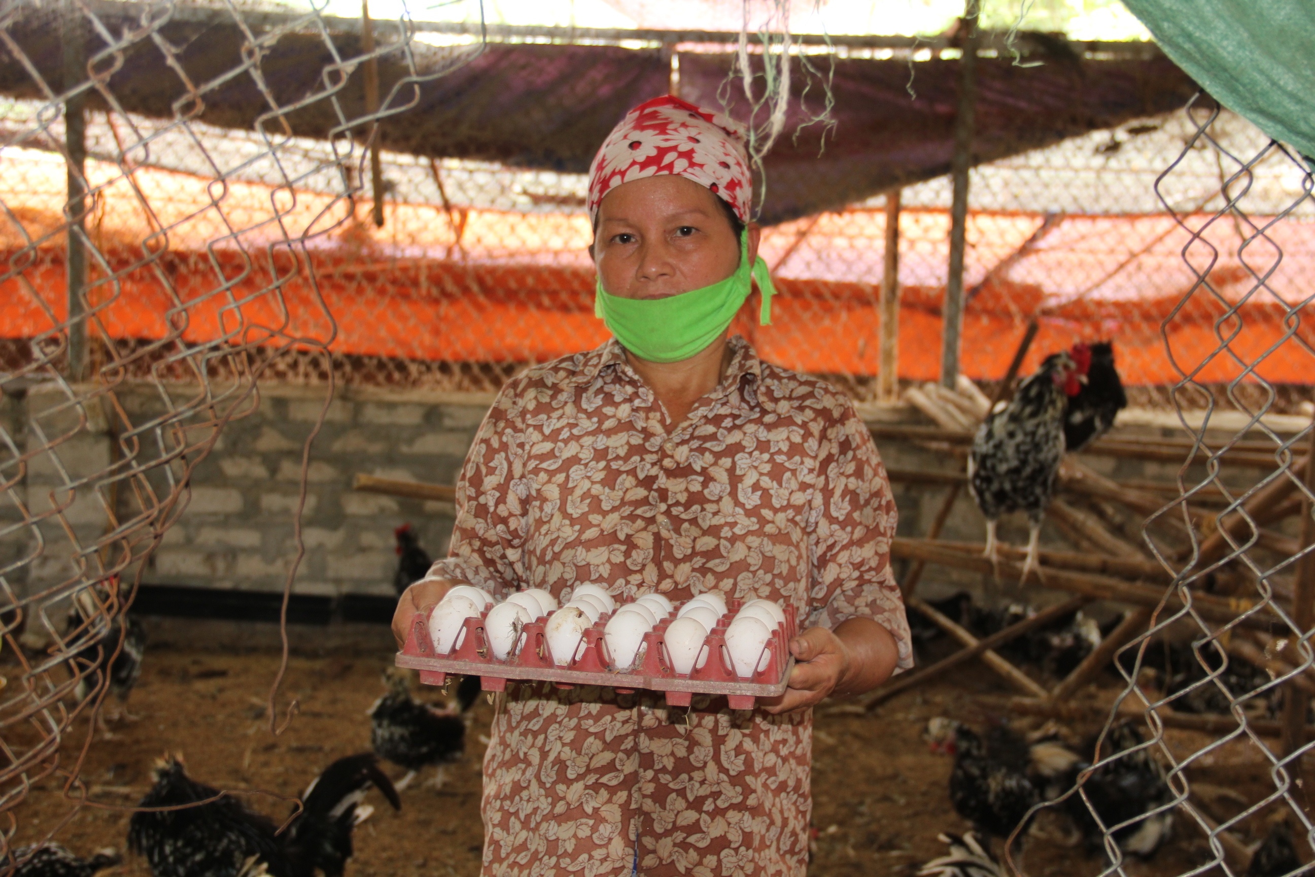 | Với hơn 1.500 con gà đẻ, anh Hợi thu được đỉnh điểm lên đến 800 trứng mỗi ngày. Trứng gà đẻ anh Hợi bảo quản để cho gà mẹ ấp, sau đó bán giống với giá 30.000 - 40.000 đồng/con. |