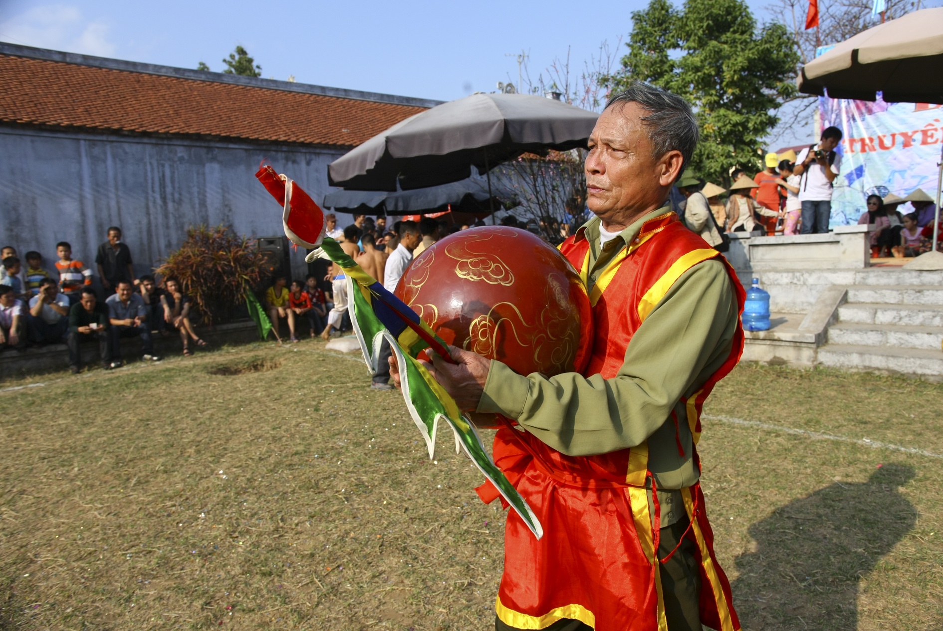Khán giả hầu hết là người trong làng, đổ ra sân đình xem rất đông.