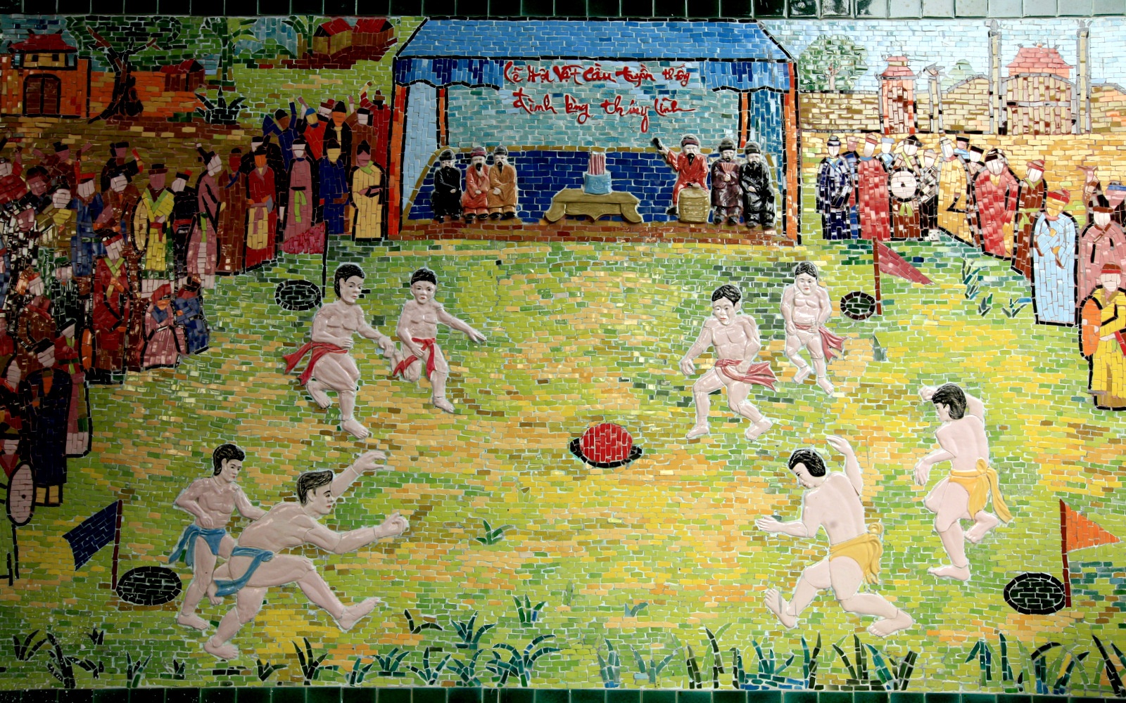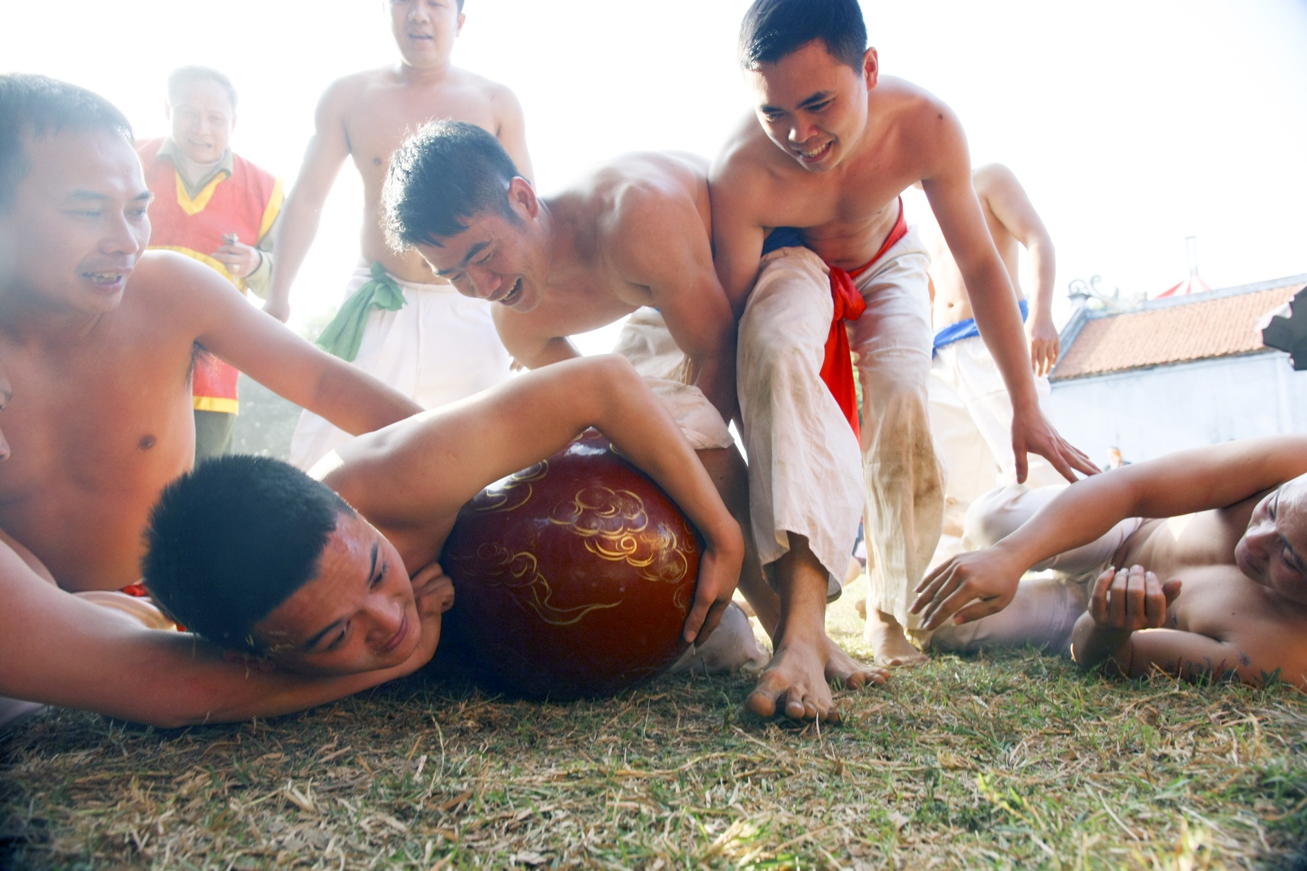8 người chơi được chia làm 4 đội, mặc trang phục quần trắng, mình trần, dây lưng chia các màu để phân biệt.