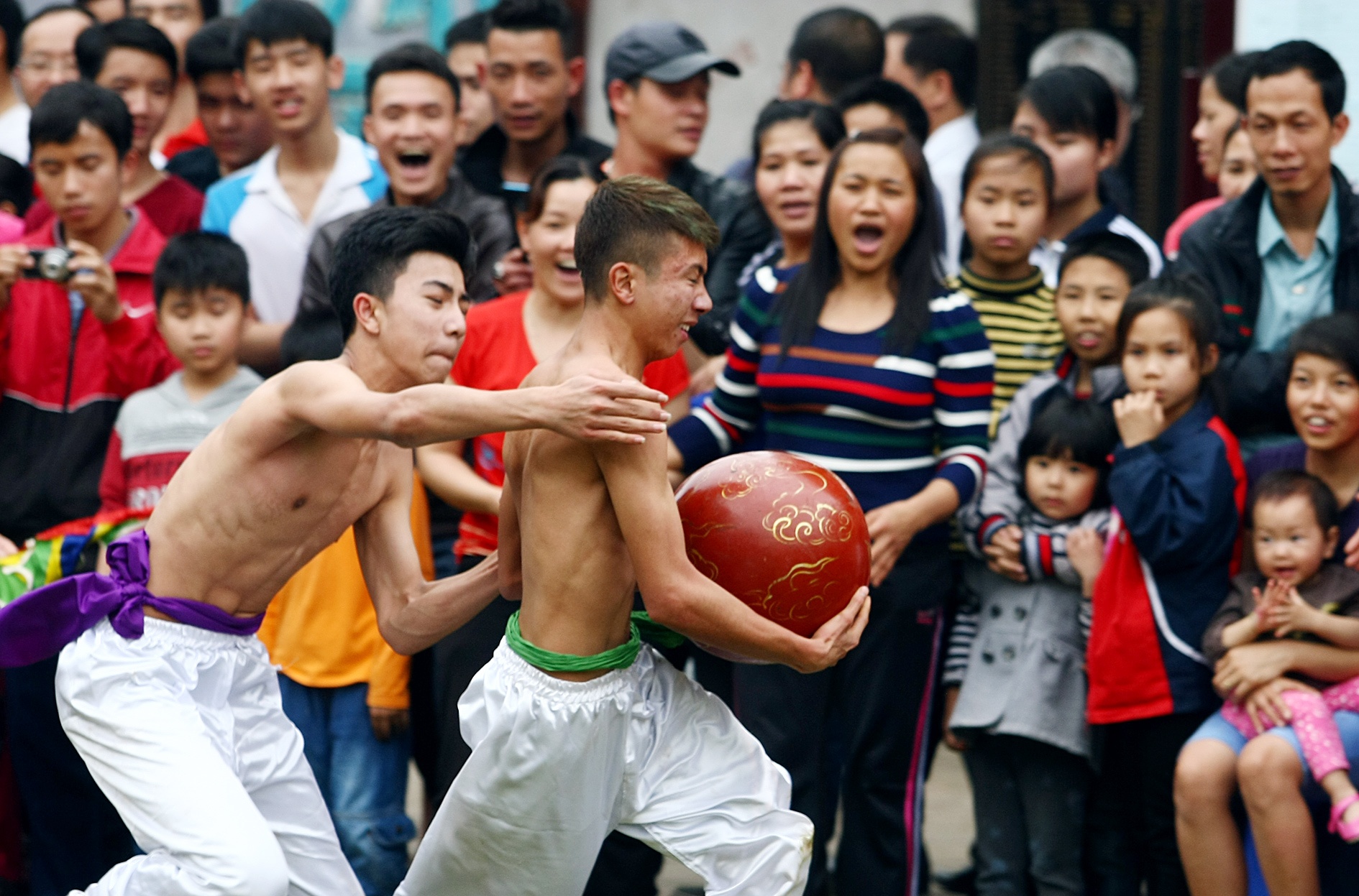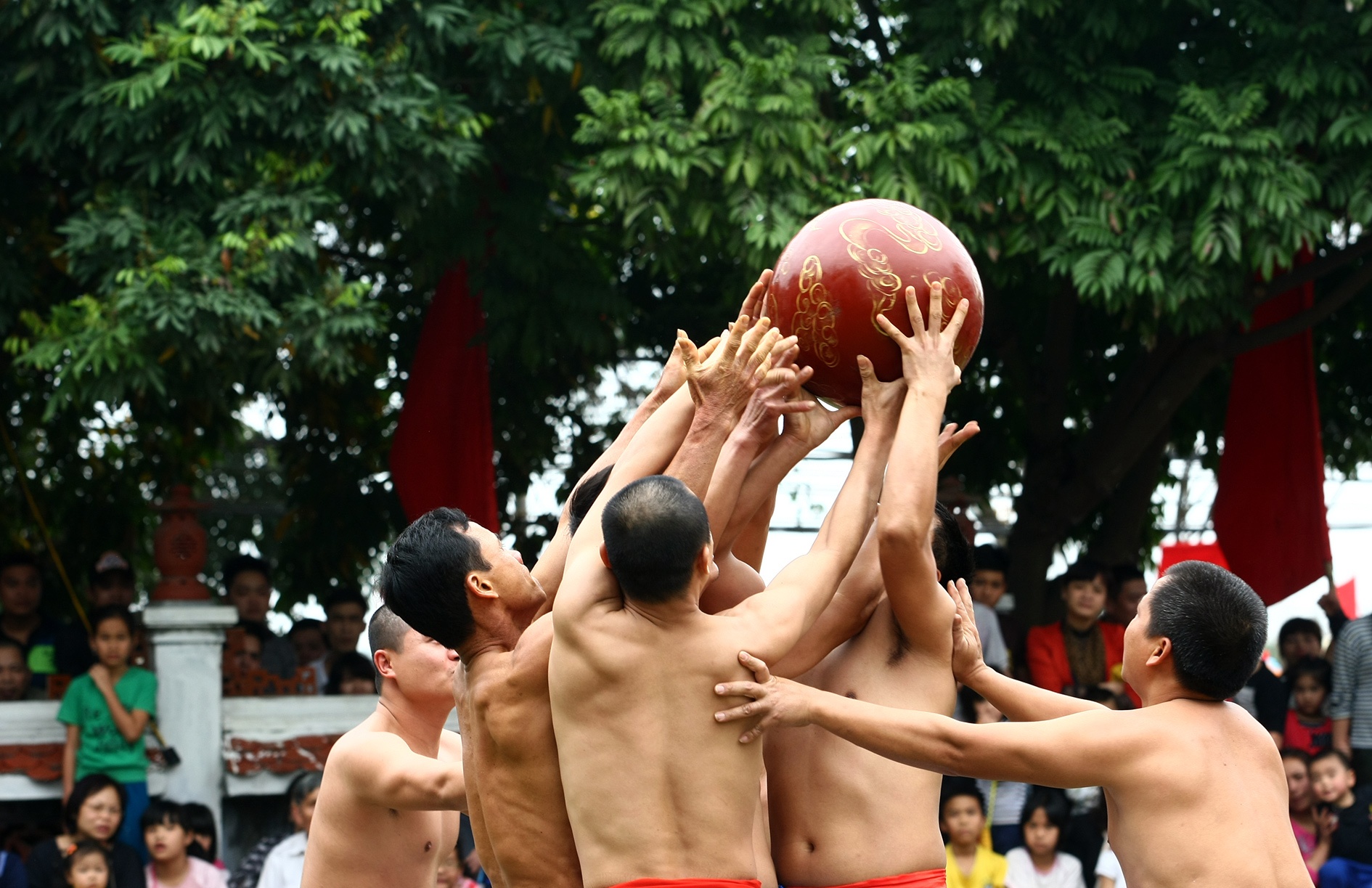 Trong quá trình thi đấu, quả cầu son nặng 27kg đã bị nứt vỡ, va chạm vào mặt và đầu người chơi khiến cho ba người bị chảy máu. Hình ảnh tại lễ hội làng Thúy Lĩnh, quận Hoàng Mai.