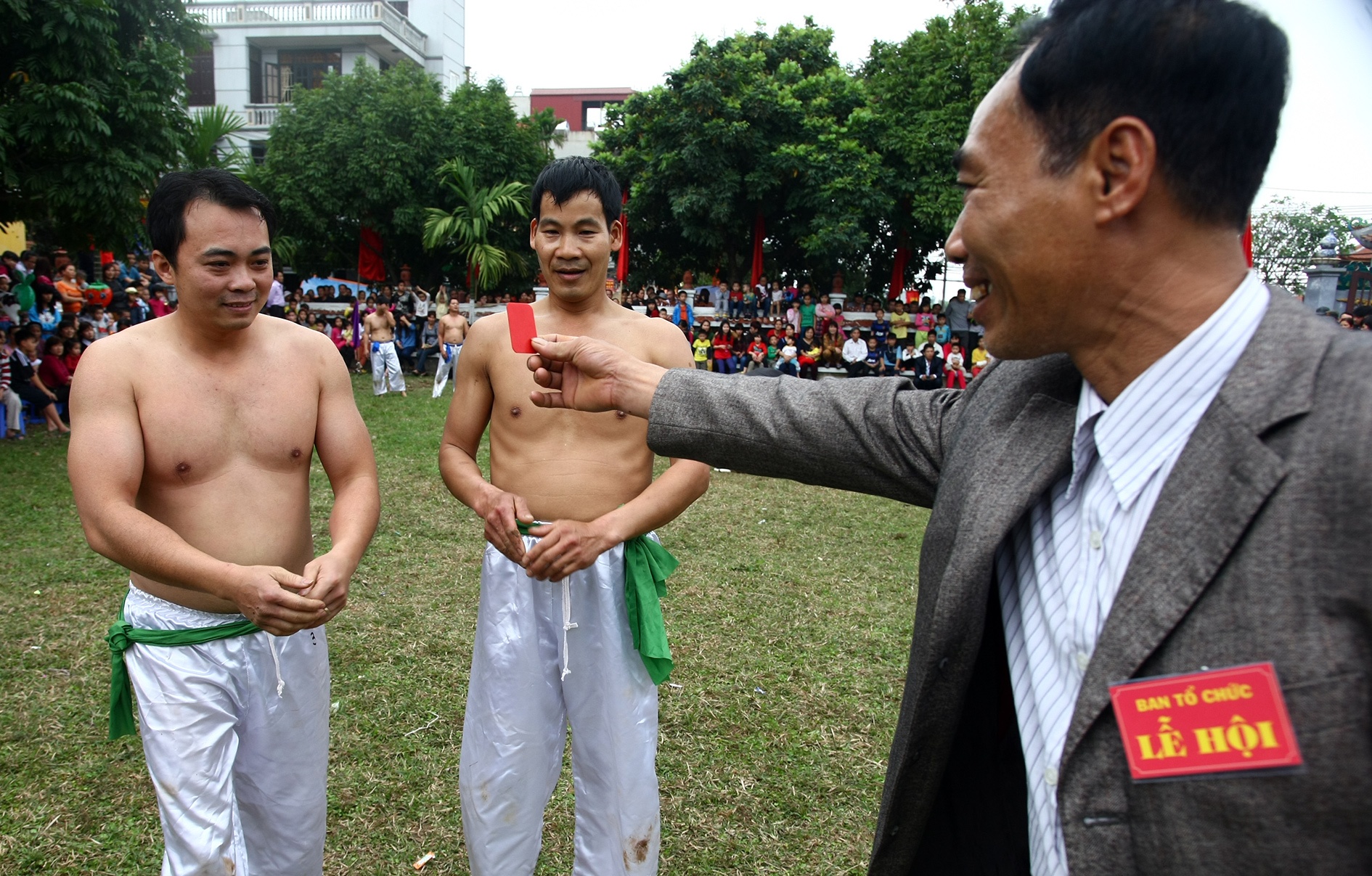| Lần lượt các nhóm thay nhau thi đấu. Hồi hộp và căng thẳng nhất là màn trổ tài của các thanh niên trai tráng tuổi từ 25 đến 40. Có những pha tưởng chừng như cầu sắp rơi vào chân. |