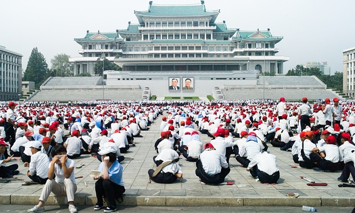 Miller cũng chụp hình người dân diễn tập cho buổi lễ kỷ niệm 70 năm thành lập đảng Lao động Triều Tiên dự kiến diễn ra ngày 10/10. Ảnh: Daniel Miller